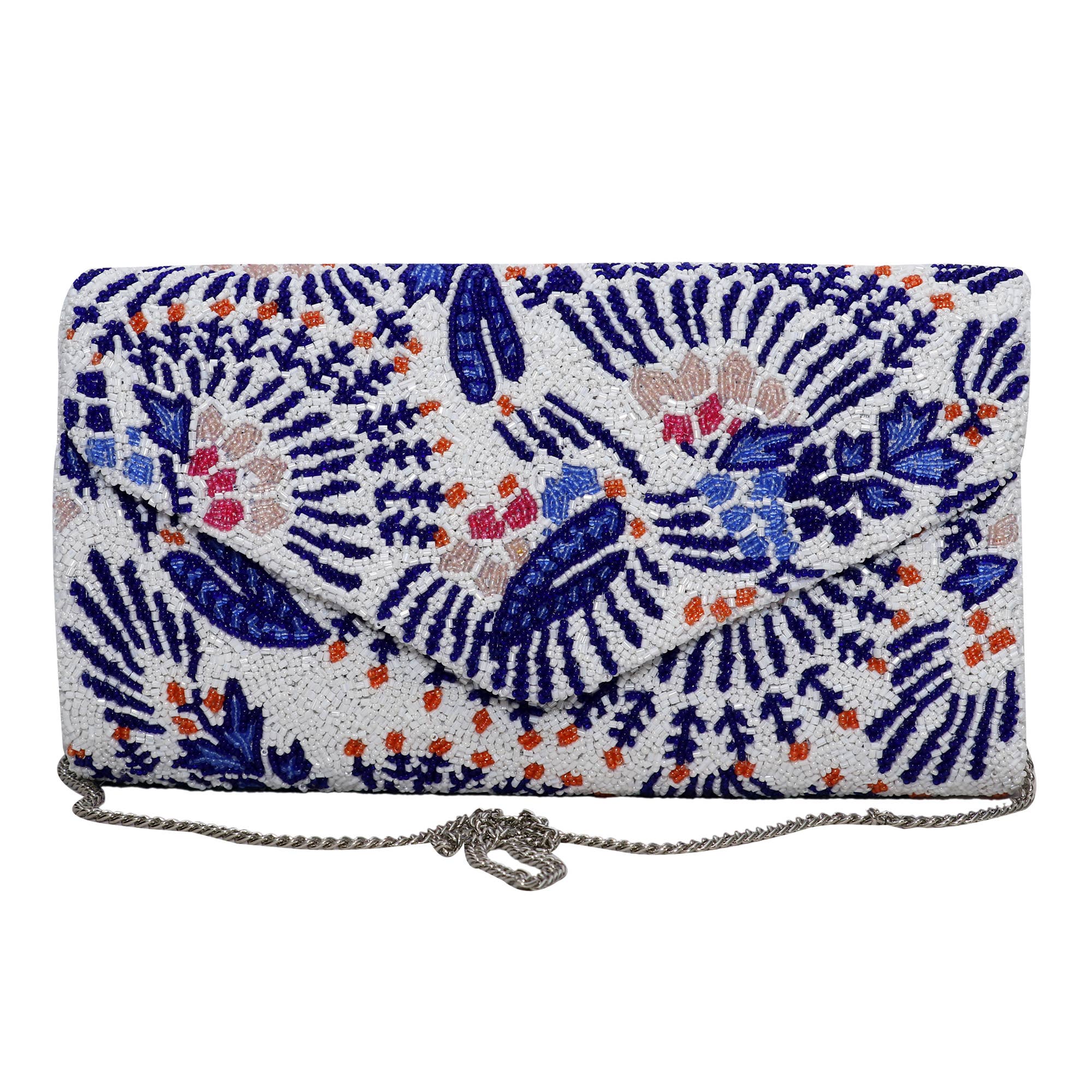 Sac à poignée entièrement découpé en perles. Avec une chaîne en métal. Ce produit est 100 % fait main et perlé à la main. Doublure luxueuse en satin, dotée d'une petite poche intérieure pour les cartes et autres objets de valeur.