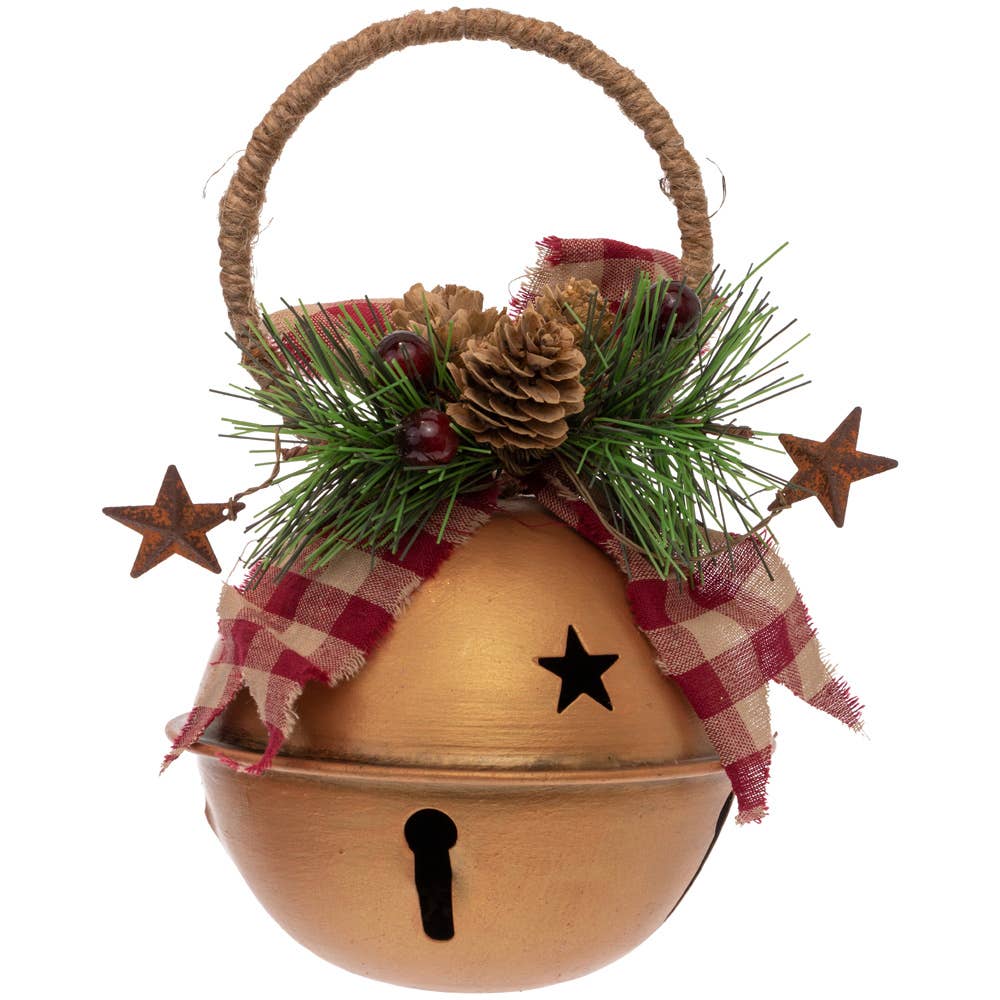 Cloche argentée Lg Garland, dimensions et informations diverses - 5 po de diamètre x 8 po de hauteur, matériaux : acier, pomme de pin, polyester, pays d'origine - Chine, SKU - NAX22585, Boston International, Noël