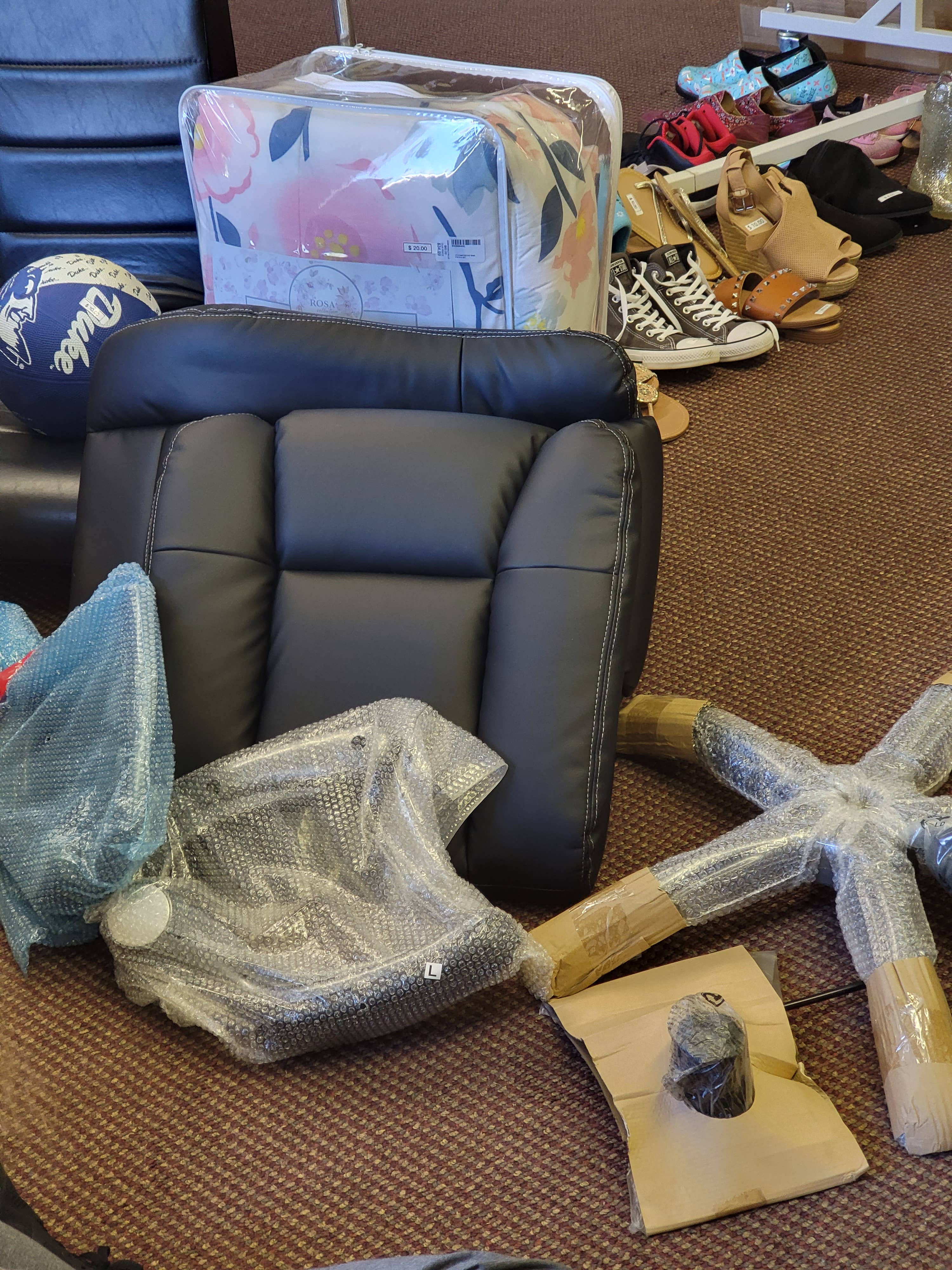 le pied inférieur et les roues ainsi que l'accoudoir les seuls articles dans la boîte étaient le siège et l'hydraulique rien d'autre très déçu après avoir attendu cet article je vais le retourner. mise à jour : j'ai eu un représentant de l'entreprise qui m'a contacté et m'a proposé un remplacement j'ai reçu la boîte à nouveau mal scotchée et cette fois l'hydraulique manquait j'ai contacté le représentant et maintenant silence.