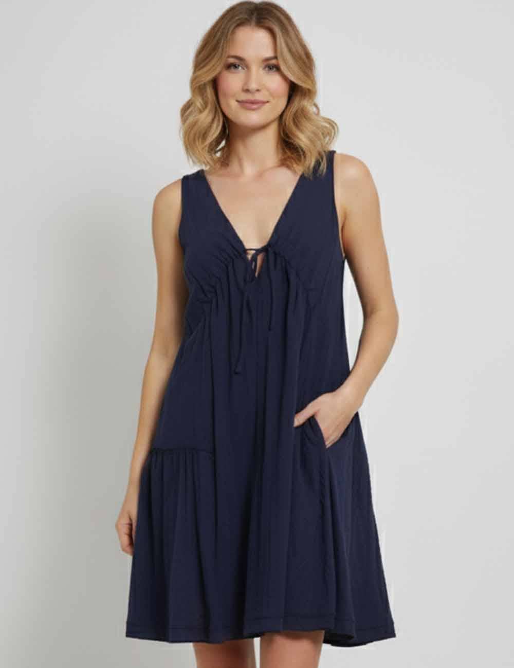 Caractéristiques : - Robe courte pour femmes - 100 % coton avec doublure 100 % polyester - Tissu non extensible - Couleur unie - Sans manches - Encolure en V devant et dans le dos - Laçage devant et dos - Coupe décontractée - Taille fidèle - Robe non transparente Essayage du modèle : - Le modèle porte une taille S - Mensurations du modèle : Taille - 175 cm (68,9 pouces) Tour de poitrine - 84 cm (33 pouces) Tour de hanches - 88 cm (34,6 pouces) Tour de taille - 62 cm (24,4 pouces) Notes : - Remises de 3 %, 5 % ou 10 % disponibles pour nos revendeurs, faites vos achats en toute confiance - La couleur peut varier selon l’éclairage, les filtres photo et l’écran utilisé - Veuillez vous référer au guide des tailles - Pour toute question, contactez notre service client, nous ferons de notre mieux pour vous aider Acceptation de la confection en marque privée : - Contactez-nous par message - Préparez le fichier de création d’étiquette au format PDF ou AI aux bonnes dimensions à l'avance