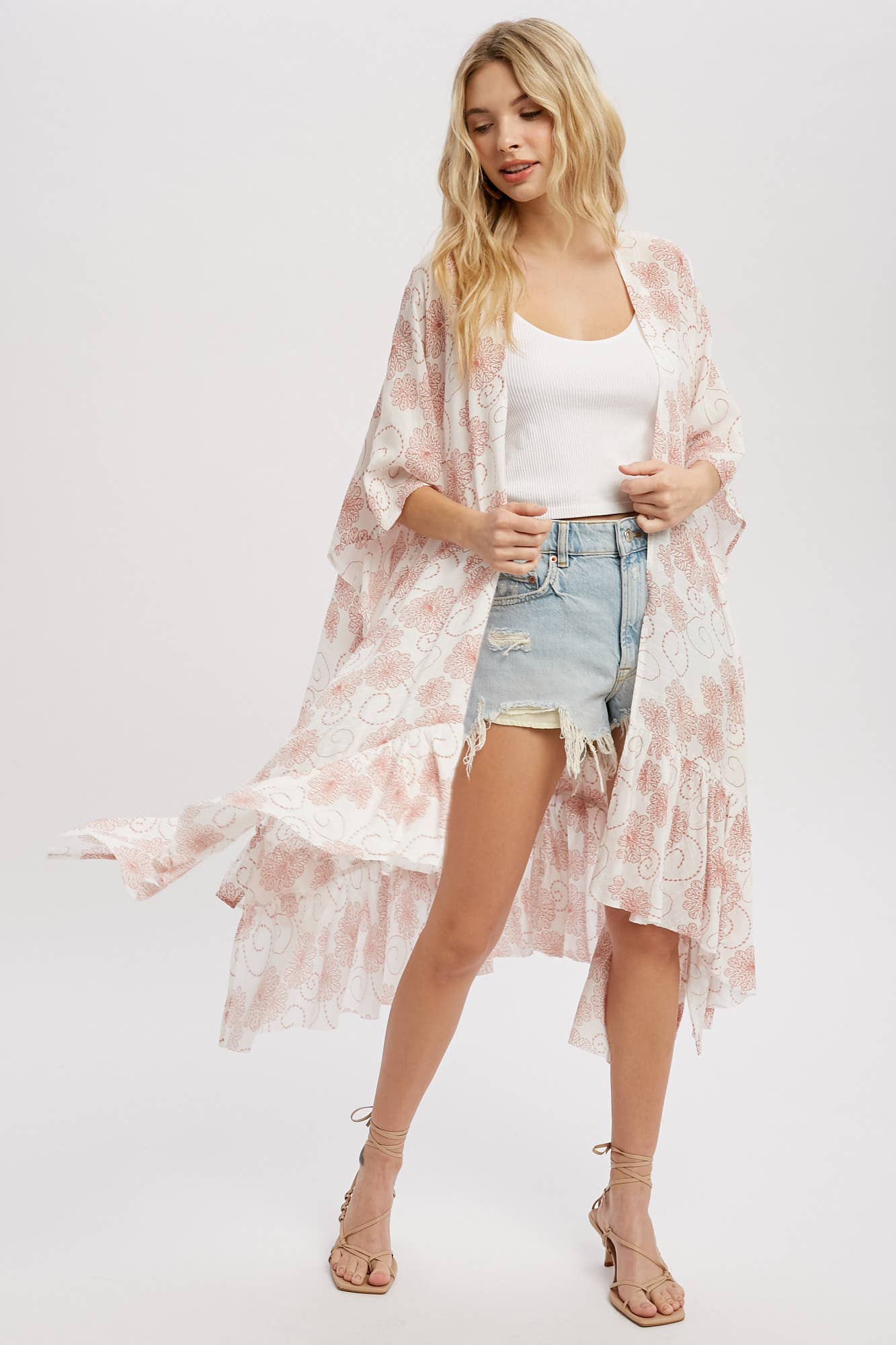 Kimono court en dentelle brodée style bohème