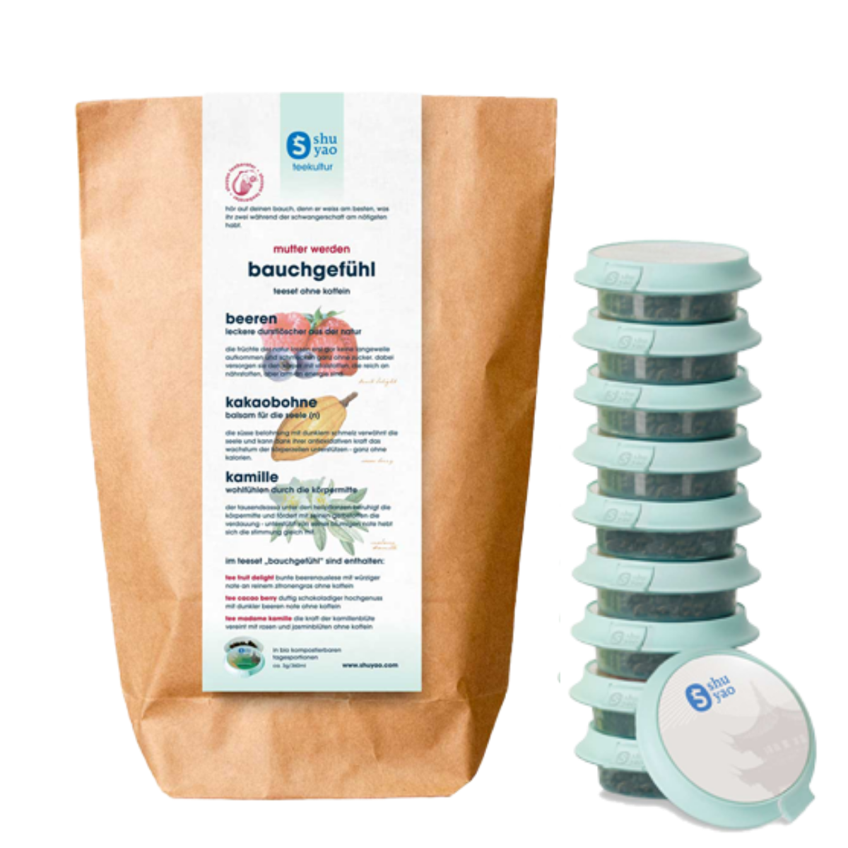 Profitez de la variété de vrais ingrédients du thé pendant des heures agréables et offrez-vous, à vous et à vos proches, une gâterie culinaire grâce à nos trésors hivernaux. Que ce soit à la maison ou de manière très pratique dans l'équipe Shuyao, versez plusieurs fois nos thés 100% naturels pour développer pleinement le goût délicieux des précieux ingrédients.