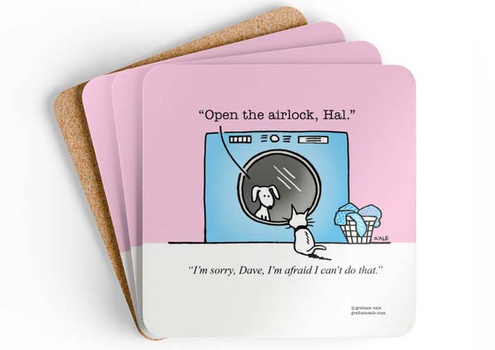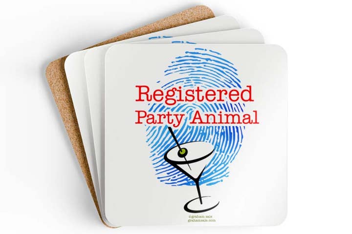 Lot de 4 sous-verres. Savourez votre boisson préférée et divertissez vos amis avec ces sous-verres amusants ! Ils présentent une finition brillante et un dos en liège pour éviter de glisser et protéger votre table. Commencez une collection. Ils font d'excellents cadeaux. Ensemble de 4 pièces Dessus en MDF à haute brillance Dos en liège pour éviter de glisser 3,75" x 3,75" 25 $