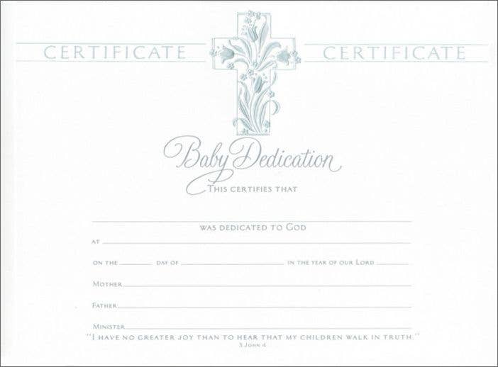 U2807 - UPC 730817354354 Magnifiquement conçus pour répondre aux goûts contemporains ou traditionnels, ces certificats de dévouement pour bébés offrent qualité, style et variété, un merveilleux ajout à la célébration de ces occasions spéciales dans la vie d'un croyant. Imprimé sur du papier de qualité supérieure avec gaufrage argenté. Lot de 6 certificats (taille 8,5 x 11) avec enveloppes incluses. Dédicace pour bébé Cela certifie que (ligne vide) était dédié à Dieu at (ligne vide) le jour (ligne blanche) de (ligne blanche) de l'année de notre Seigneur (ligne blanche) (ligne vide) Mère (ligne vide) Père (ligne vide) Pasteur Je n'ai pas de plus grande joie que d'apprendre que mes enfants marchent dans la vérité. 3 Jean 4
