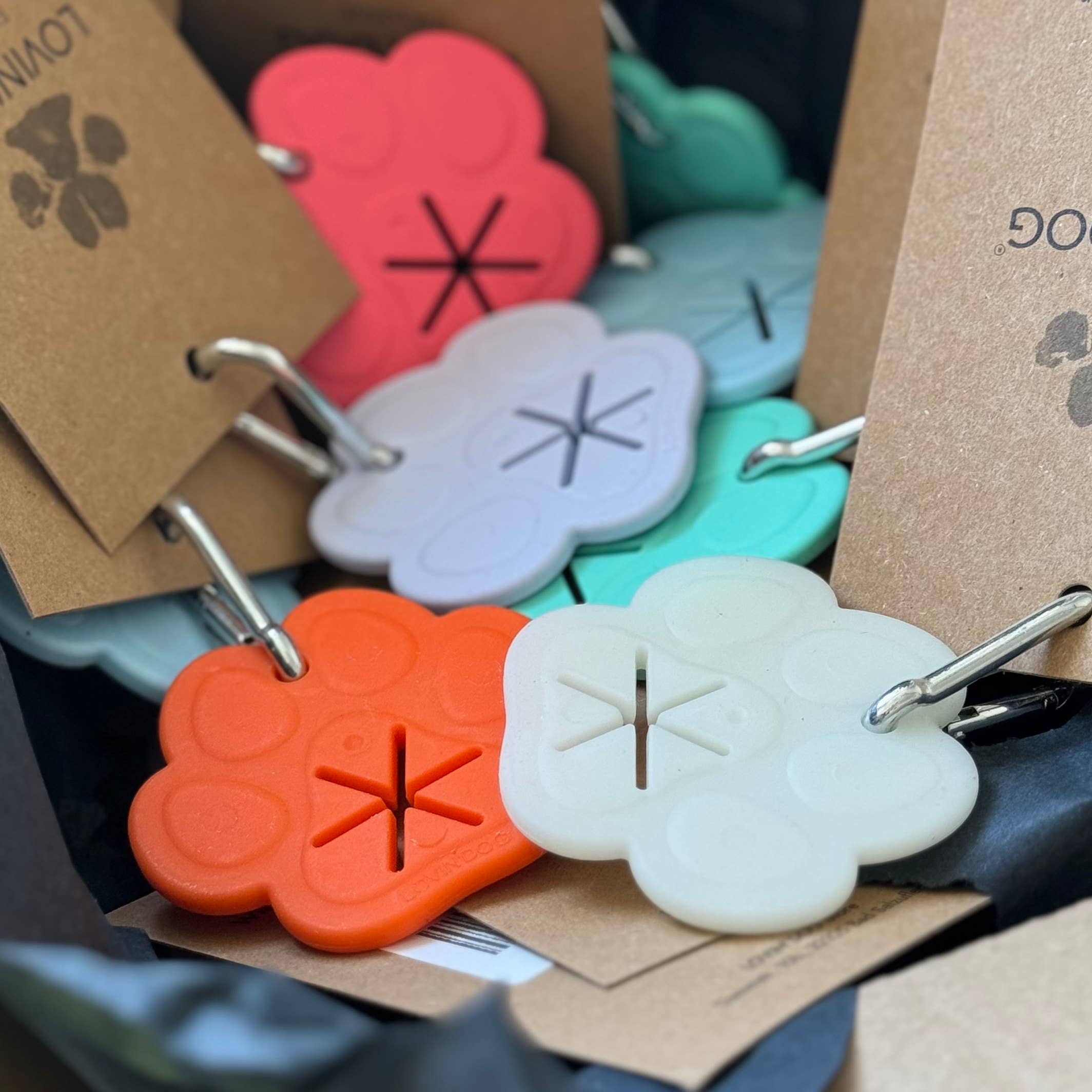 Porte-sacs à déjections en forme de patte orange en vente B2B
