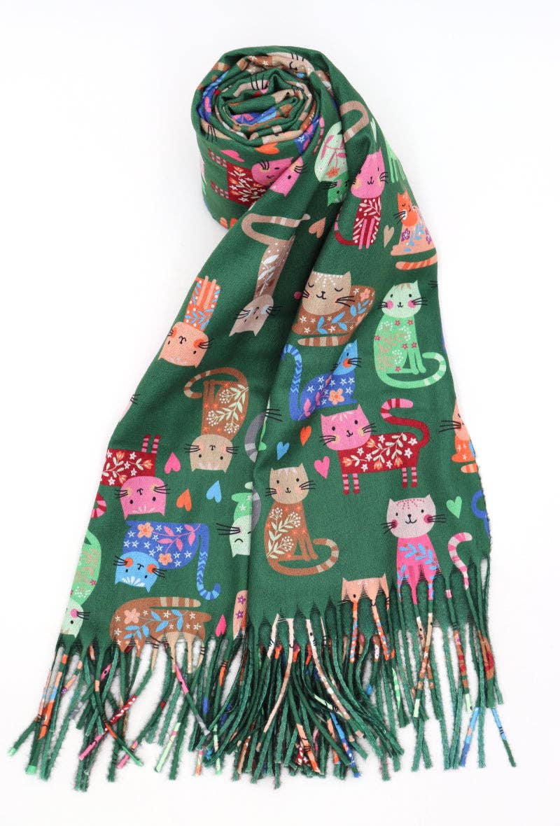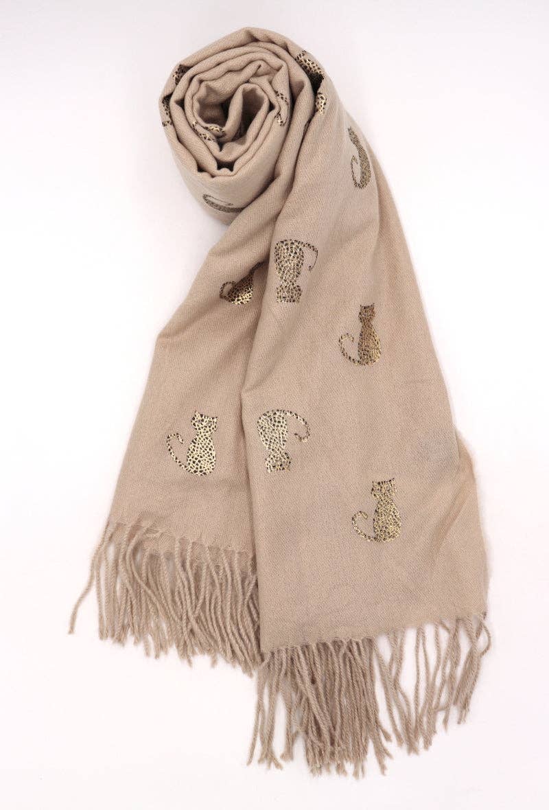 Echarpe imprimé chats, 70% Viscose 30% Laine Dimensions : 75 x 180 cm