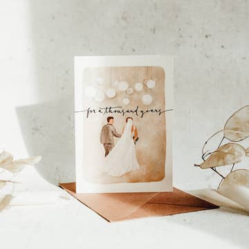 Une carte de mariage douce et ludique présentant une paire de baskets attachées ensemble, peintes à la main dans notre style fantaisiste signature. Parfaite pour célébrer les couples qui aiment rester décontractés, amusants et pleins d'amour. Devant : Félicitations pour avoir noué le nœud Intérieur : Vide Une carte légère pour les mariages, les fiançailles ou les anniversaires Idéale pour les amateurs de baskets, les couples décalés ou les histoires d'amour discrètes - Carte de 12,7 x 17,4 cm - Comprend une enveloppe assortie (13,3 x 18,4 cm) - Intérieur vide pour votre propre message - Conçue et imprimée au Canada Un ajout amusant et sincère aux présentoirs de cartes de mariage, aux boutiques de cadeaux modernes ou aux collections de papeterie sur le thème des célébrations.