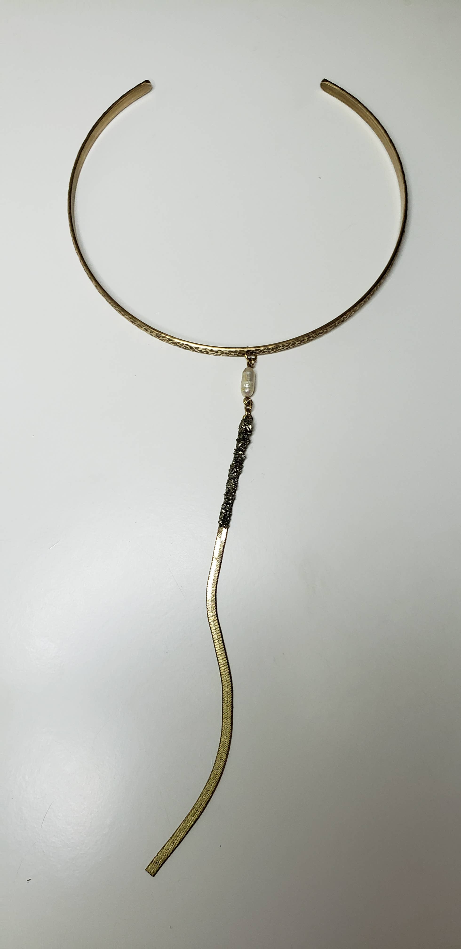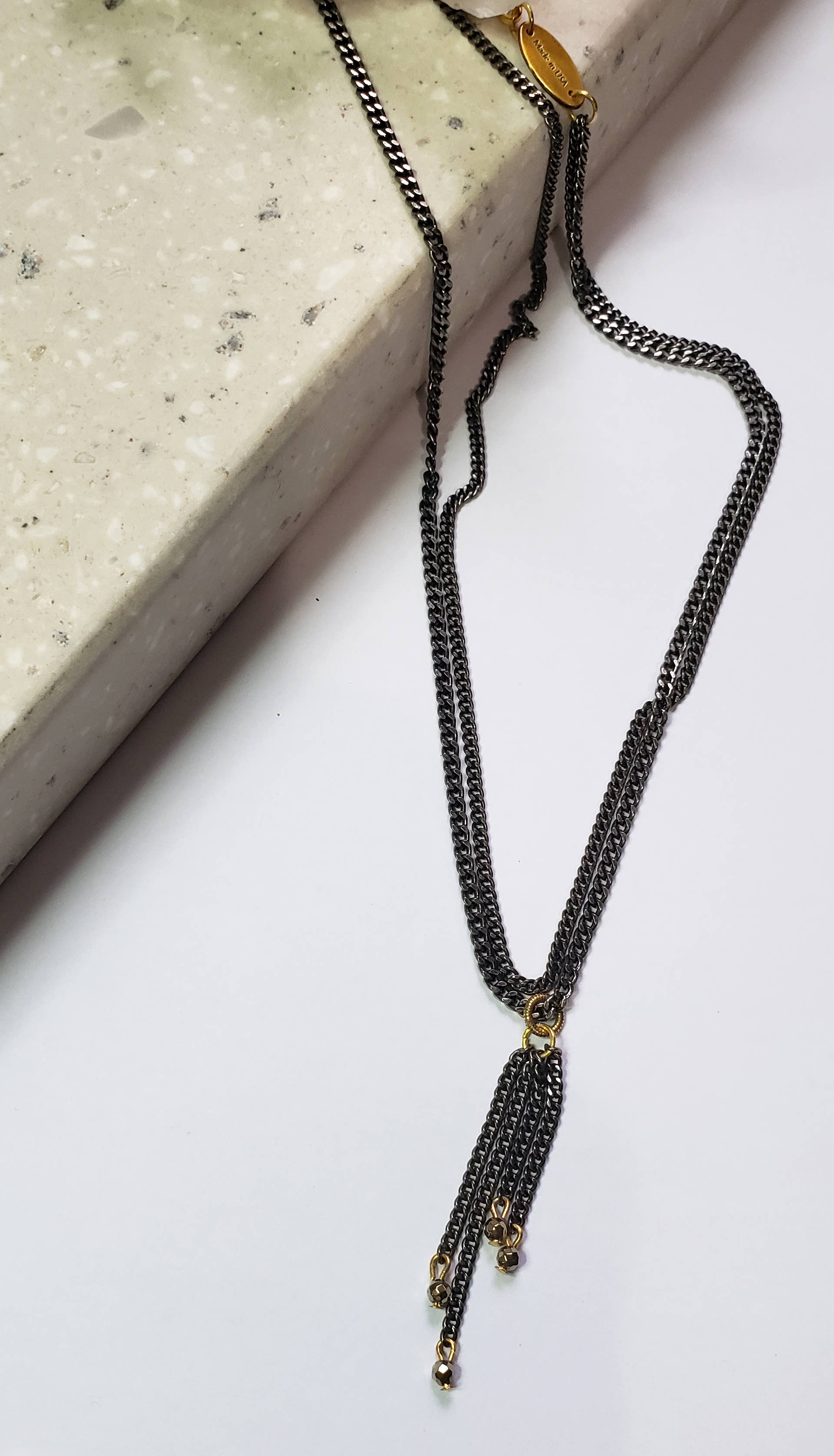 Croissant de lune argenté avec tourmaline verte. Métal : chaîne noire Gunmetal - 16 po.