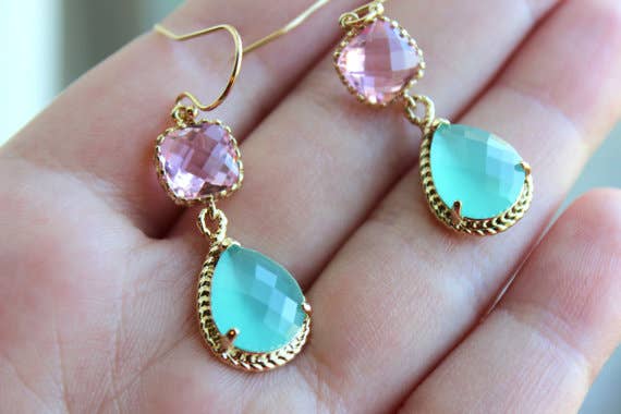 Les pierres précieuses en verre bleu saphir sont 13mm avec 5mm à la partie la plus épaisse. Ce sont des gemmes plaquées rhodium (argent). Les carrés en verre rose fuchsia mesurent 9 mm. Les boucles d'oreilles sont en argent sterling, la longueur des boucles d'oreilles mesure environ 1,5 pouces de long. Ces boucles d'oreilles sont si simples et élégantes. Ils peuvent être portés pour une variété d'occasions - mariage, soirée, travail, ou tout simplement tous les jours !