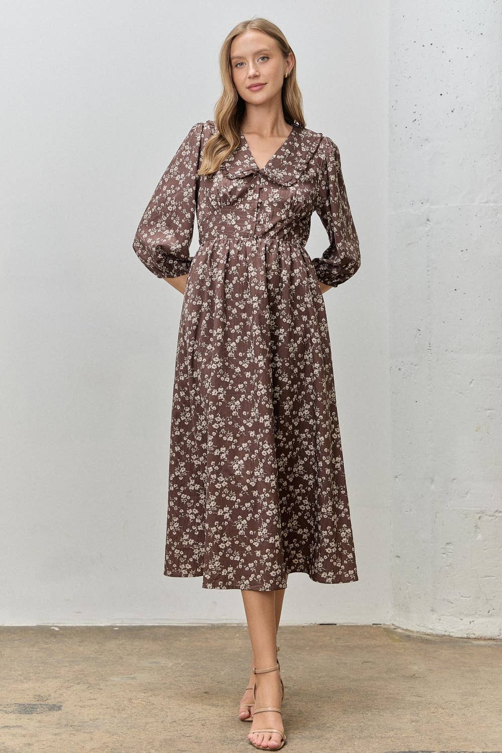 +ROBE MIDI +FERMETURE ÉCLAIR AU DOS +COL ROND LE MANNEQUIN PORTE UNE TAILLE