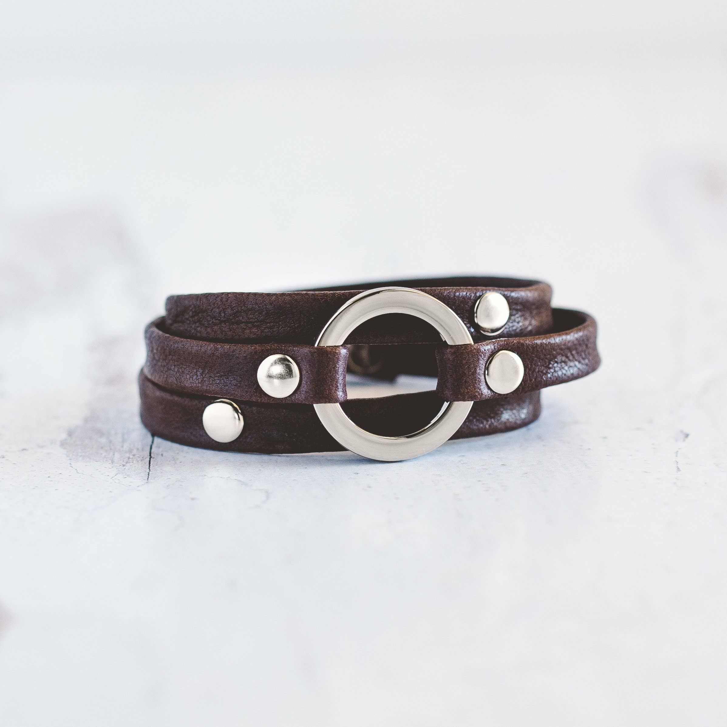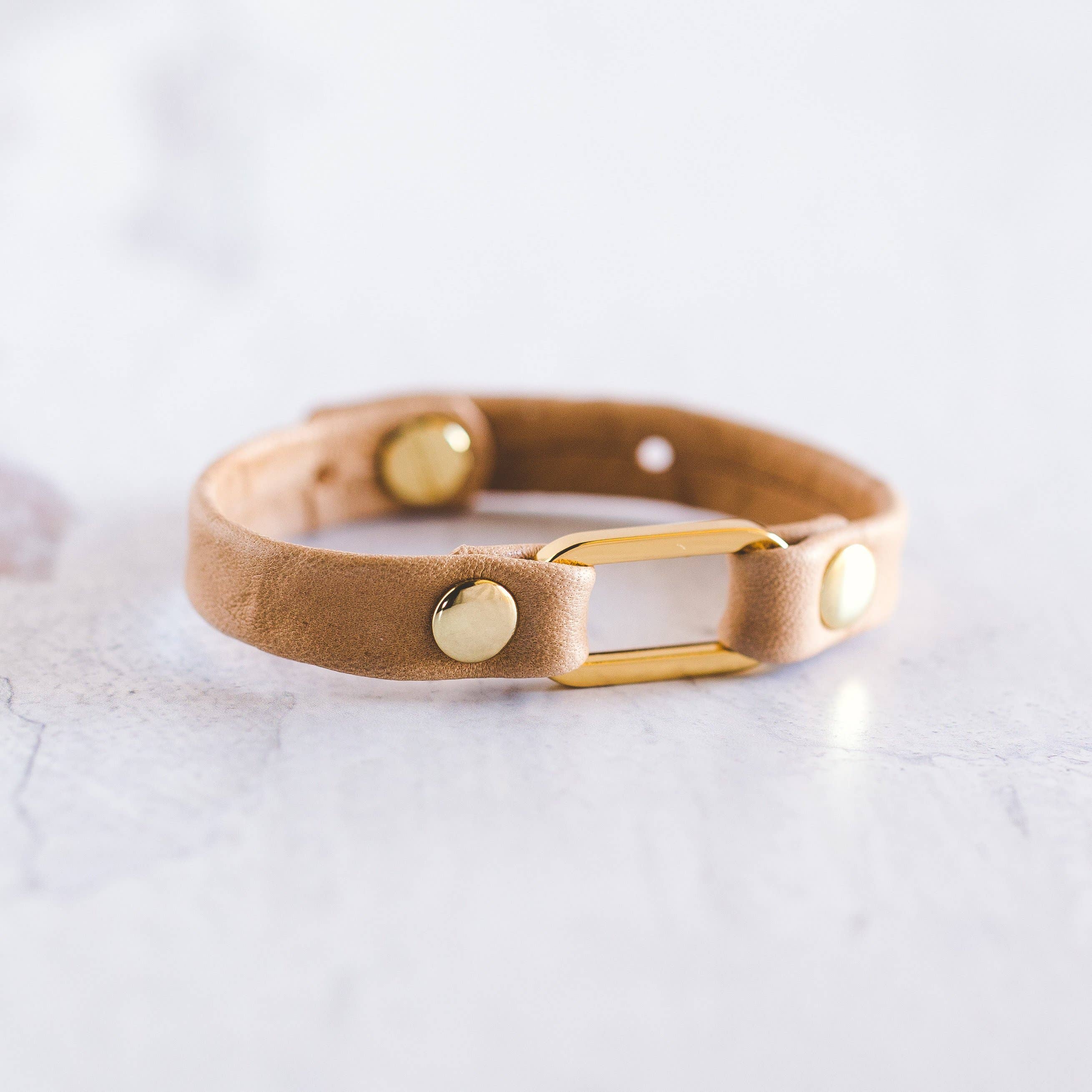 Pour les jours où vous voulez être un peu chic ! Notre manchette Fancy est un large bracelet fabriqué dans le cuir le plus doux, orné de 4 curseurs à boucle dorés. -Cuir d'agneau véritable -Métal en alliage de zinc de haute qualité, hypoallergénique et ne ternissant pas -Taille unique qui convient à la plupart des personnes : réglable de 6,5 à 7,5 pouces, taille plus grande sur demande -Fermeture à double bouton -Mesure environ 1 1/4 po de large -Livré avec un sac en lin et des instructions de taille -Fabriqué à la main à Scottsdale, AZ 10 % de nos recettes sont reversées à Voices for CASA Children, un programme qui défend les intérêts des enfants placés en famille d'accueil.