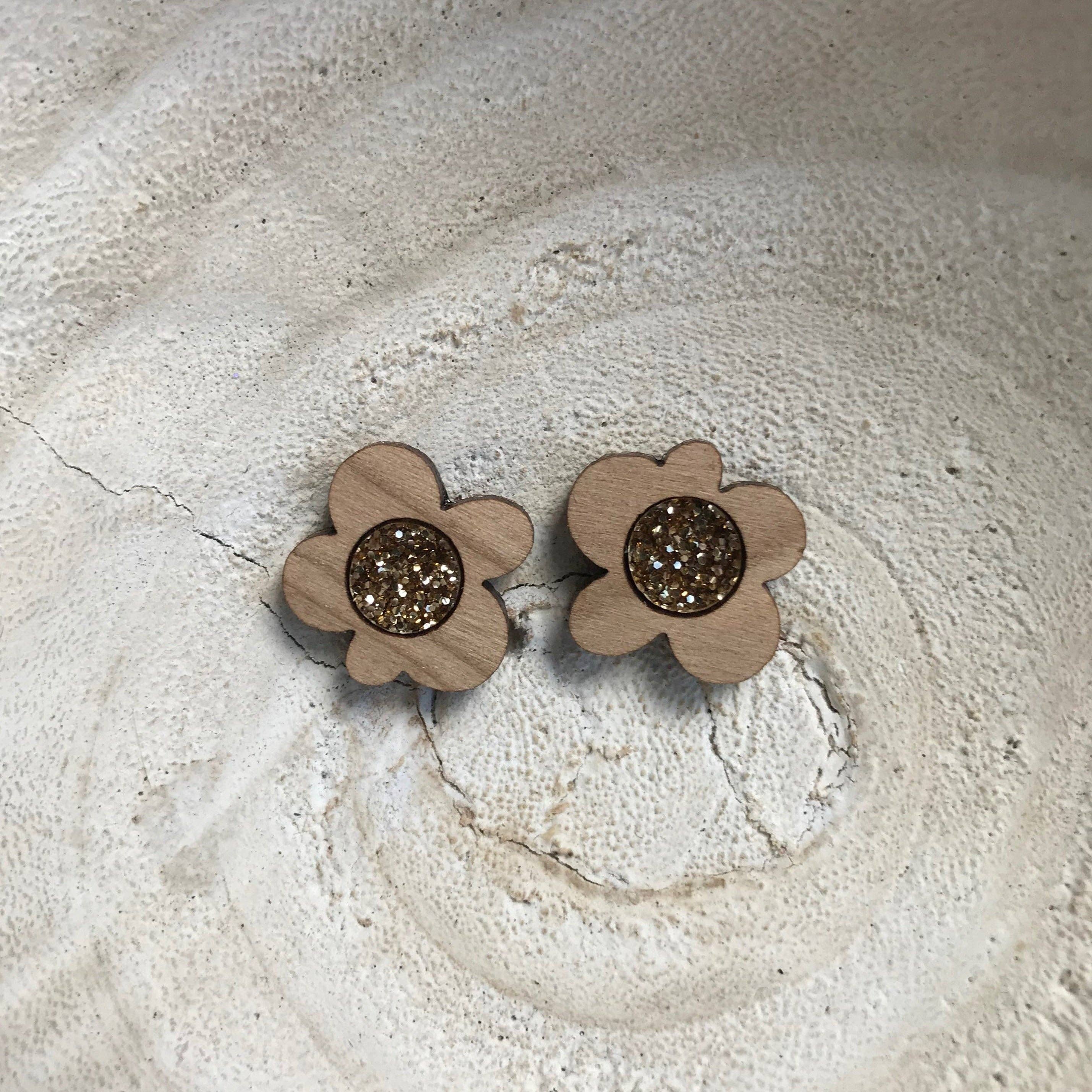 Boucles d'oreilles à tige midi Moon Flower | Bois de cerisier et or | VENTE EN GROS