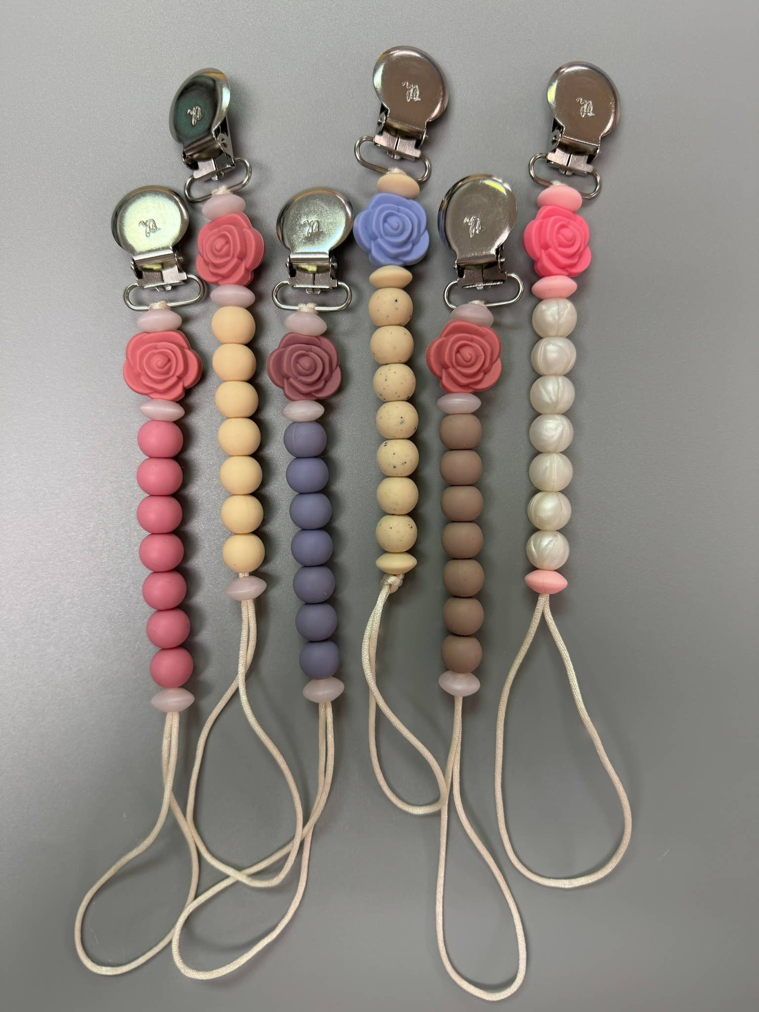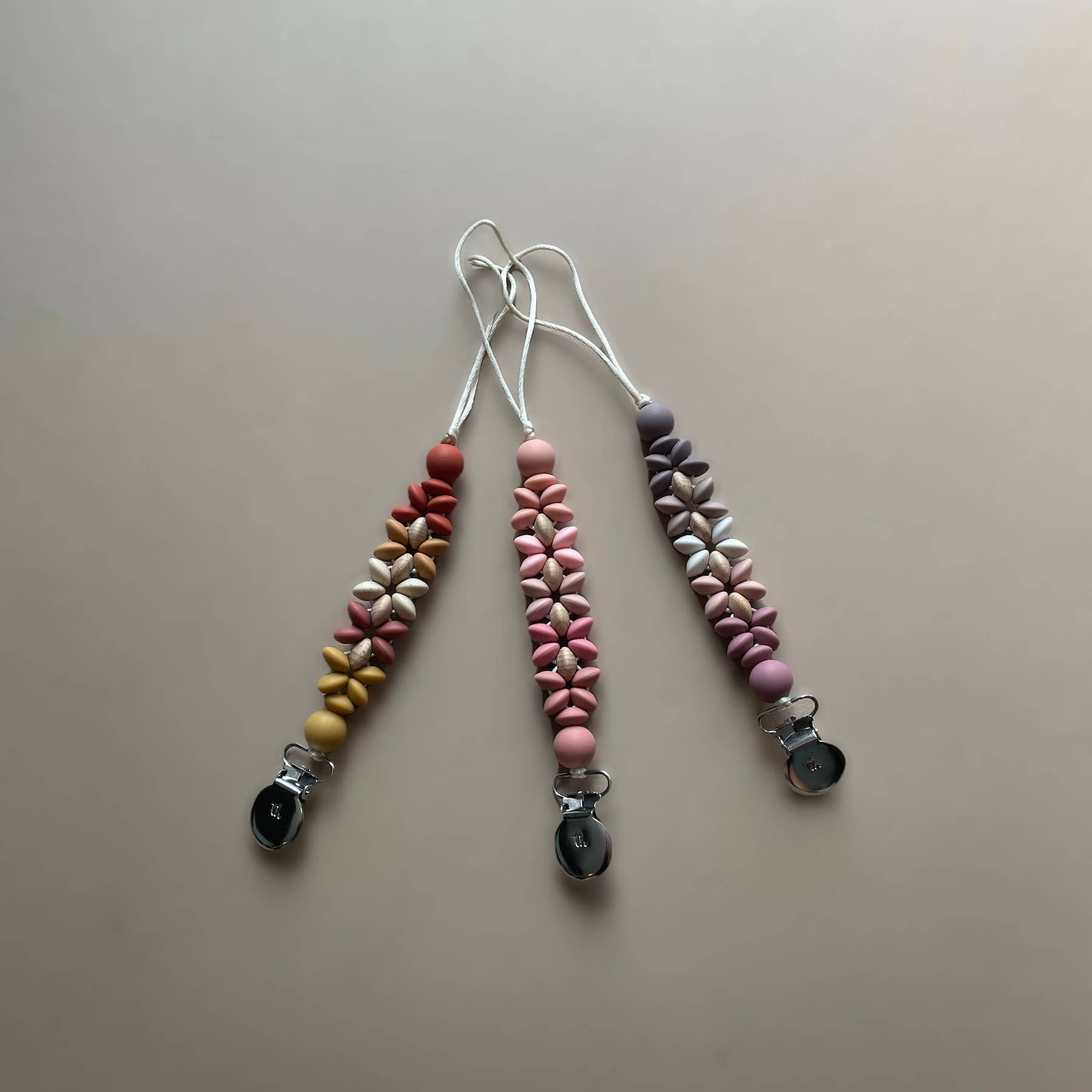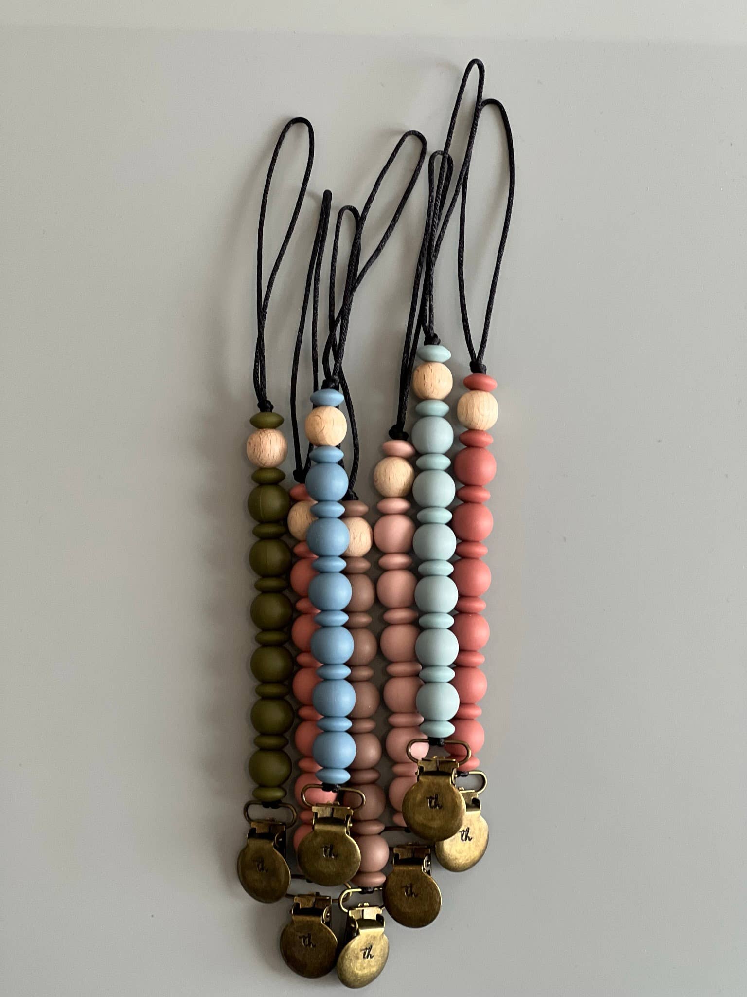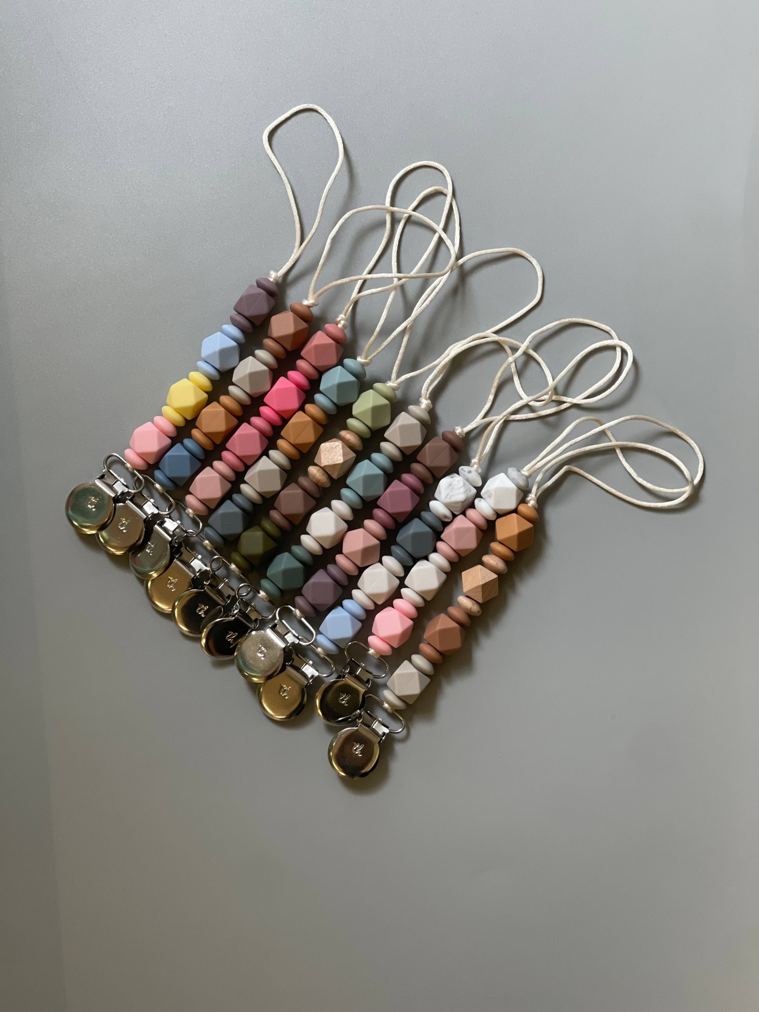 Nos clips sont fabriqués avec du silicone sans BPA et certains modèles contiennent également du bois de hêtre entièrement naturel afin de fournir des textures variées répondant aux besoins de dentition des bébés. Nos clips sont conçus pour tenir jusqu'à un gobelet ou un gobelet. Three Hearts se passionne pour la fabrication d'articles fonctionnels et sûrs pour les parents et les bébés modernes. Nos produits sont toujours fabriqués avec du silicone 100 % certifié de qualité alimentaire et non toxique (sans BPA, cadmium, phtalates, PVC et plomb). Nous utilisons également du bois de hêtre non traité dans toutes nos créations. Chaque pièce est fabriquée à la main avec soin et amour. NETTOYAGE Le silicone ne favorise pas la croissance des bactéries ou des moisissures, vous pouvez donc être assuré qu'il n'y a pas de germes nocifs. Tous nos produits peuvent être nettoyés facilement à l'eau chaude savonneuse. NE PAS faire tremper le clip en métal ou en bois dans l'eau pendant de longues périodes car cela pourrait provoquer de la rouille. SÉCURITÉ Cet article ne doit être utilisé que sous la surveillance d'un adulte. Les petites pièces peuvent présenter un risque d'étouffement. Les clips sont conçus pour les bébés de 3 mois et plus.
