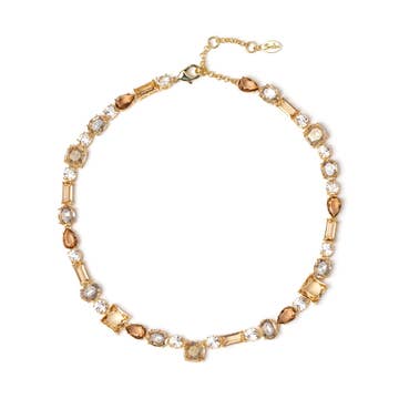 Pierre de lune grise mystique, maillons en argent sterling oxydé, finitions remplies d'or 14 carats. Longueur : 16" réglable