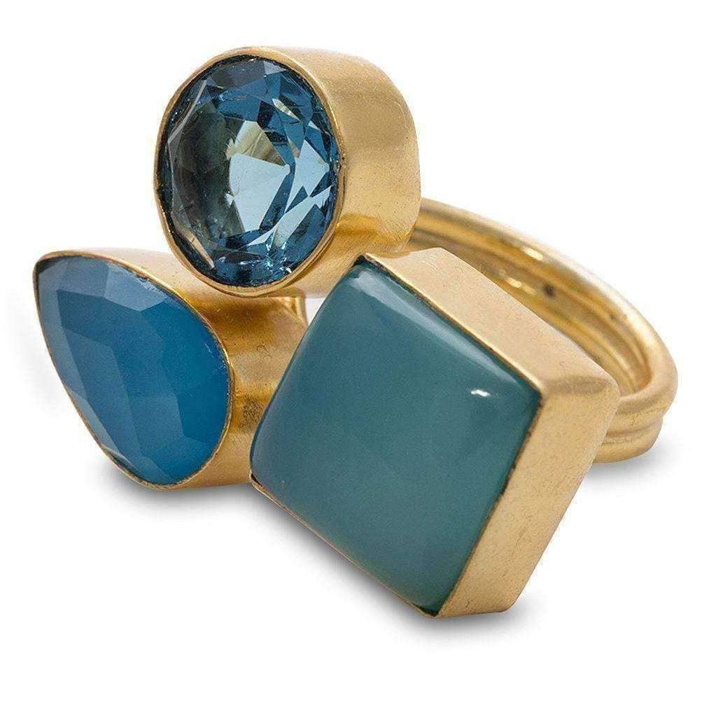 Bague Tara Gold en laiton avec onyx, quartz et perle en vente B2B
