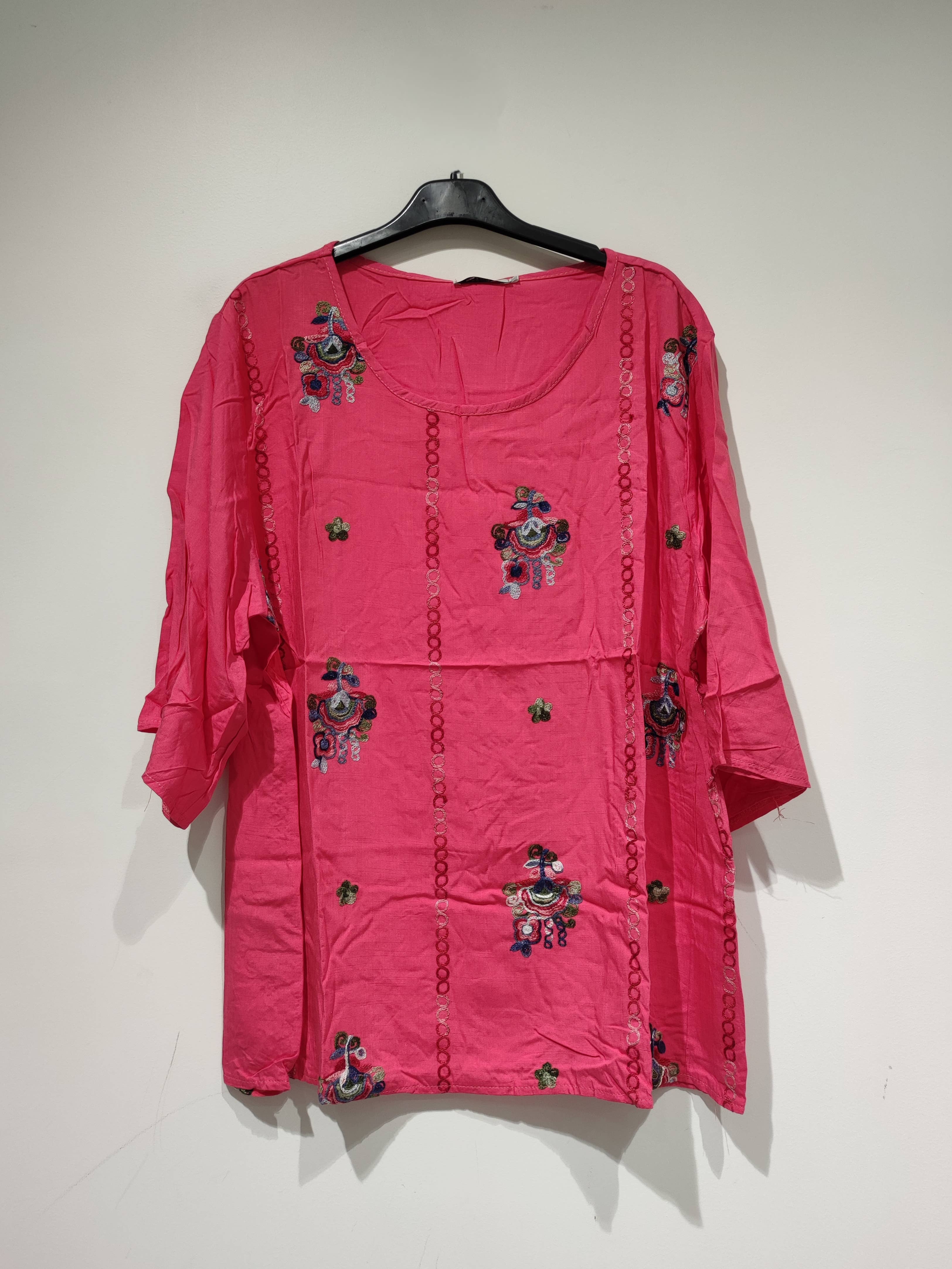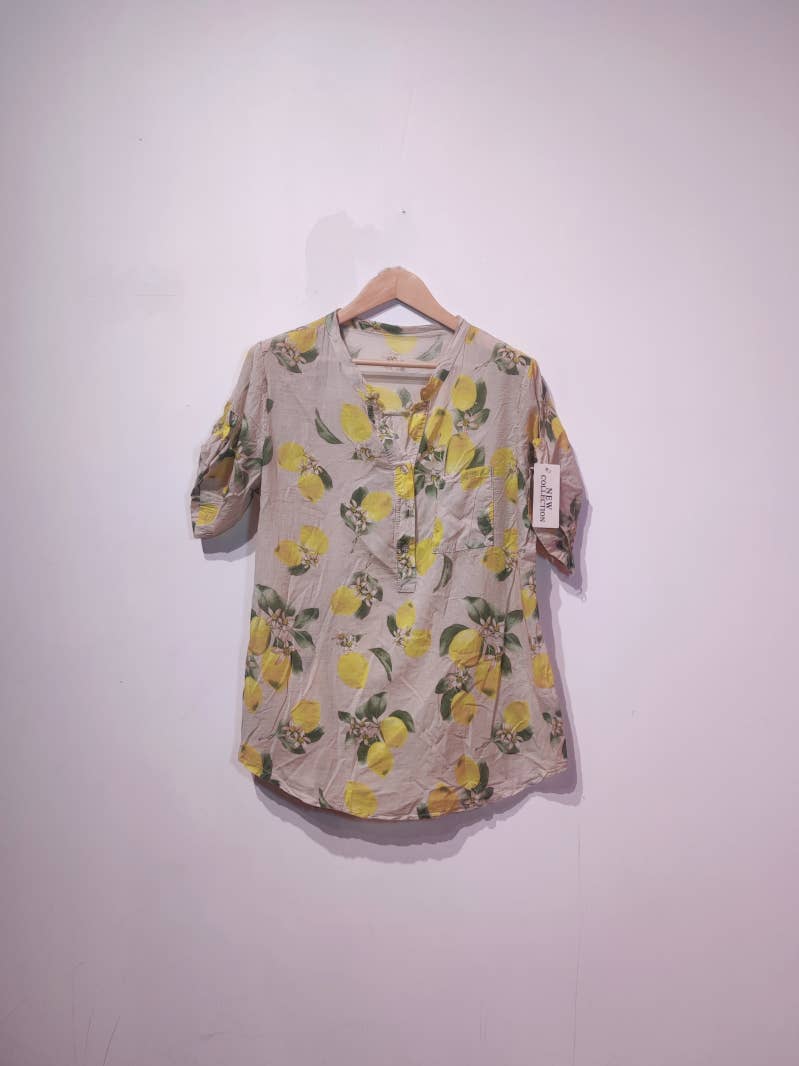 COMPOSITION : 65% VISCOSE 35% POLYESTER Top imprimés avec col élastique. Longueur : 70cm Tour de poitrine : 80cm environ Convient de la taille 36 à 42. MADE IN CHINA Top printed with elastic collar. Length: 70cm Chest tower: 80cm approximately Suitable for size 36 to 42. MADE IN CHINA