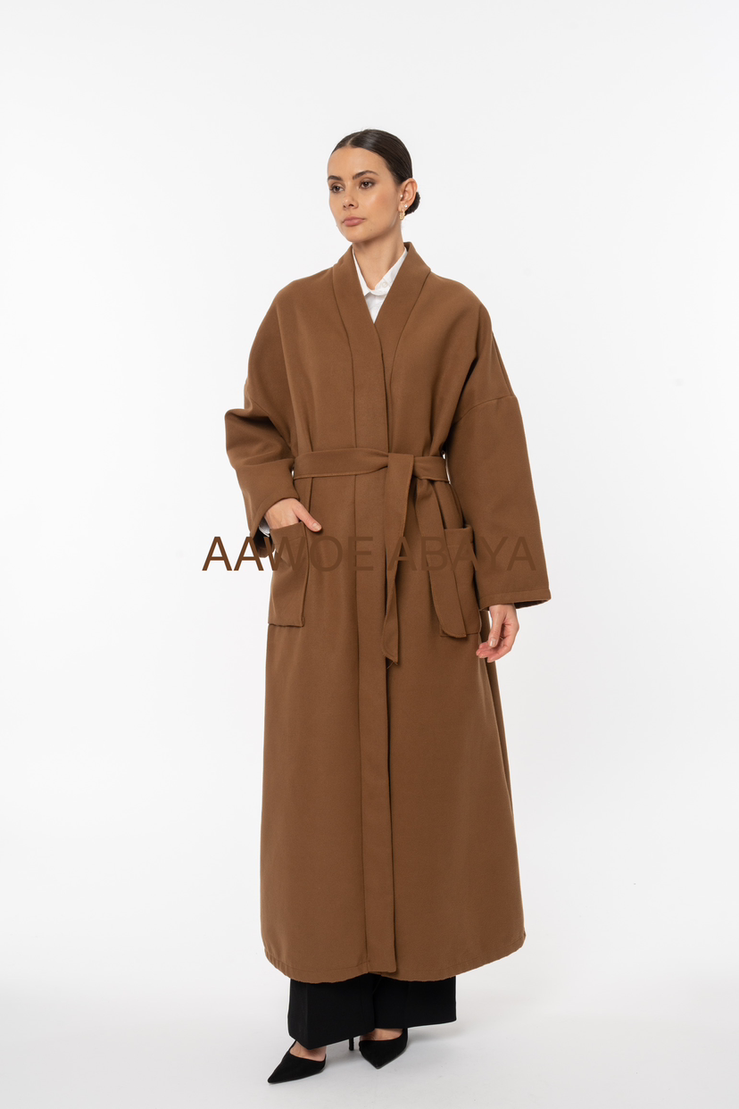 Manteaux en laine avec ceinture manche longue papillons environ 145cm à partir de taille 36-46 pour femme
