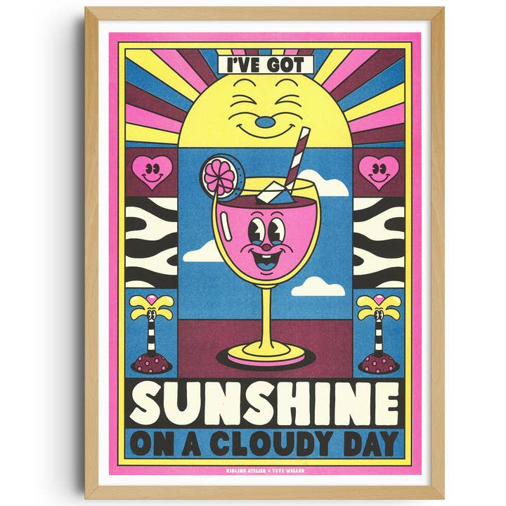 Collection KIBLIND x Yeye Weller ✨ "Pharrell Williams – Because I’m Happy" ✨ Impression en Risographie par KIBLIND Atelier Sur papier Munken Print White 150g Format A3 - 29,7 x 42 cm Affiche livrée emballée, avec support rigide cartonné Présentoir en bois offert pour toute commande de 50 affiches