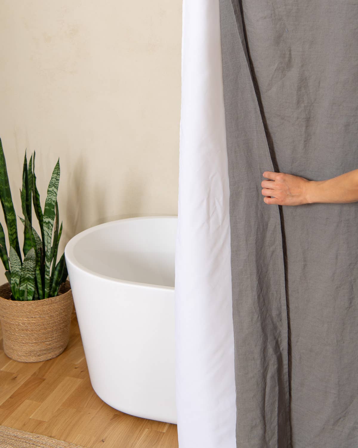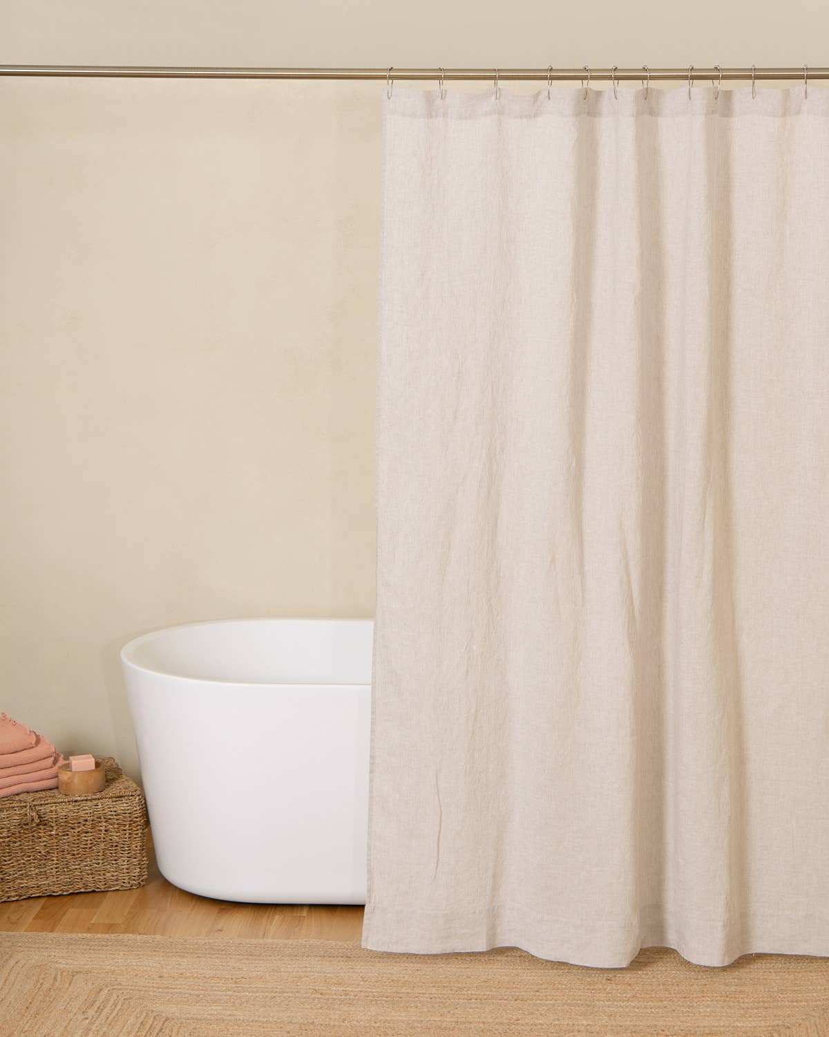 Ce rideau de douche en lin est conçu pour les hôtels, les boutiques, les designers d'intérieur et les partenaires de vente au détail à la recherche d'une solution textile de salle de bain haut de gamme et naturelle. Fabriqué à partir de 100 % de lin et associé à une doublure imperméable amovible, il offre à la fois un attrait esthétique et une protection fiable contre l'humidité dans les environnements à forte utilisation. La couche extérieure en lin respirant offre une apparence raffinée et texturée, tandis que la doublure imperméable aide à protéger les surfaces et les sols environnants. Le rideau est doté d'ouvertures à boutonnières pour une installation facile et une compatibilité avec les anneaux ou crochets de douche standard. - Fabriqué à partir de lin européen à 100 % - Lin de poids moyen - Prélavé pour plus de douceur - Durable et longue durée - Naturellement évacuant l'humidité - Avec une doublure imperméable amovible - Compatible avec les anneaux ou crochets de douche - Fabriqué de manière éthique dans l'UE