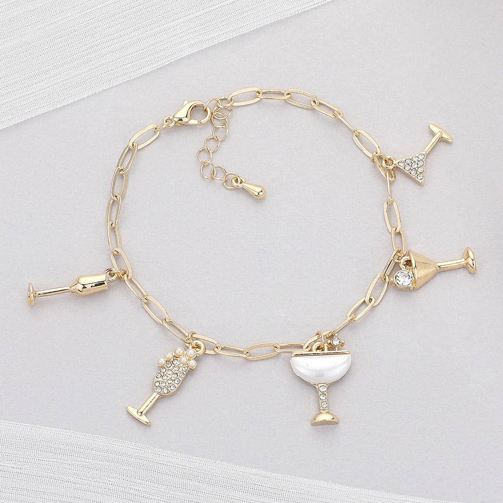Taille du collier : 16,25" + 3,5" L Taille du décor : 0,75" L Conforme au plomb et au nickel Ce collier à breloques cocktail ajoute une touche de fun et de sophistication avec ses pendentifs inspirés des boissons pétillantes. Conçu sur une chaîne chic, il apporte une touche festive et avant-gardiste à n'importe quelle tenue—parfait pour les fêtes, les célébrations ou pour ajouter une touche ludique au style quotidien.