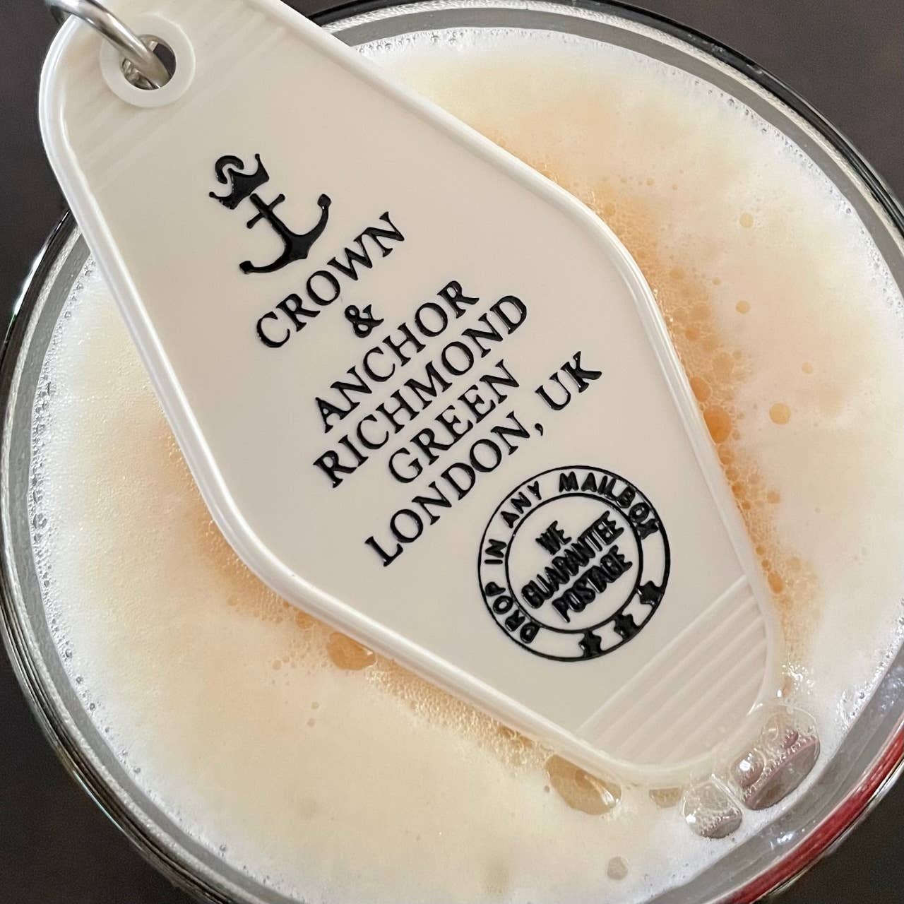 Porte-clés de motel de style vintage, avec bague collectrice de 32 mm, représentant le groupe de soutien de Ted et de ses amis. FLASH D'ACTUALITÉS ! ! Nous réalisons maintenant notre propre moulage par injection interne pour le porte-clés en plastique. Cela signifie qu'il est 100 % fabriqué en Amérique et que nous avons plus d'options de couleurs. Nous avons également ajouté un anneau supplémentaire au porte-clés pour qu'il soit suspendu à plat !