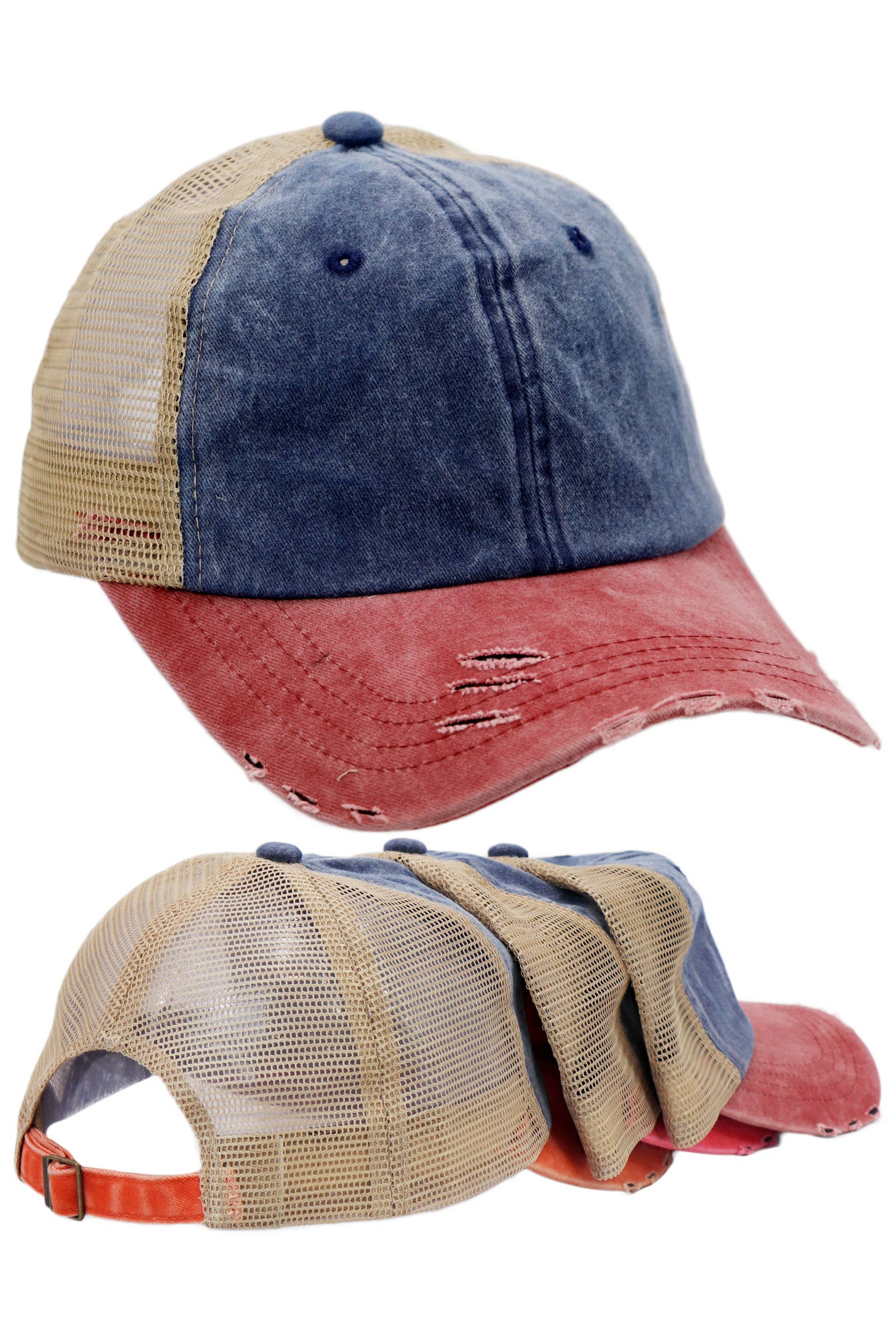 Casquette de camionneur non structurée teinte en vêtement délavé bicolore en vente B2B