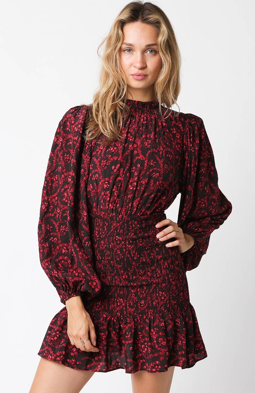 Notre robe Ophelia présente une fermeture boutonnée et une manche bouffante tissée.