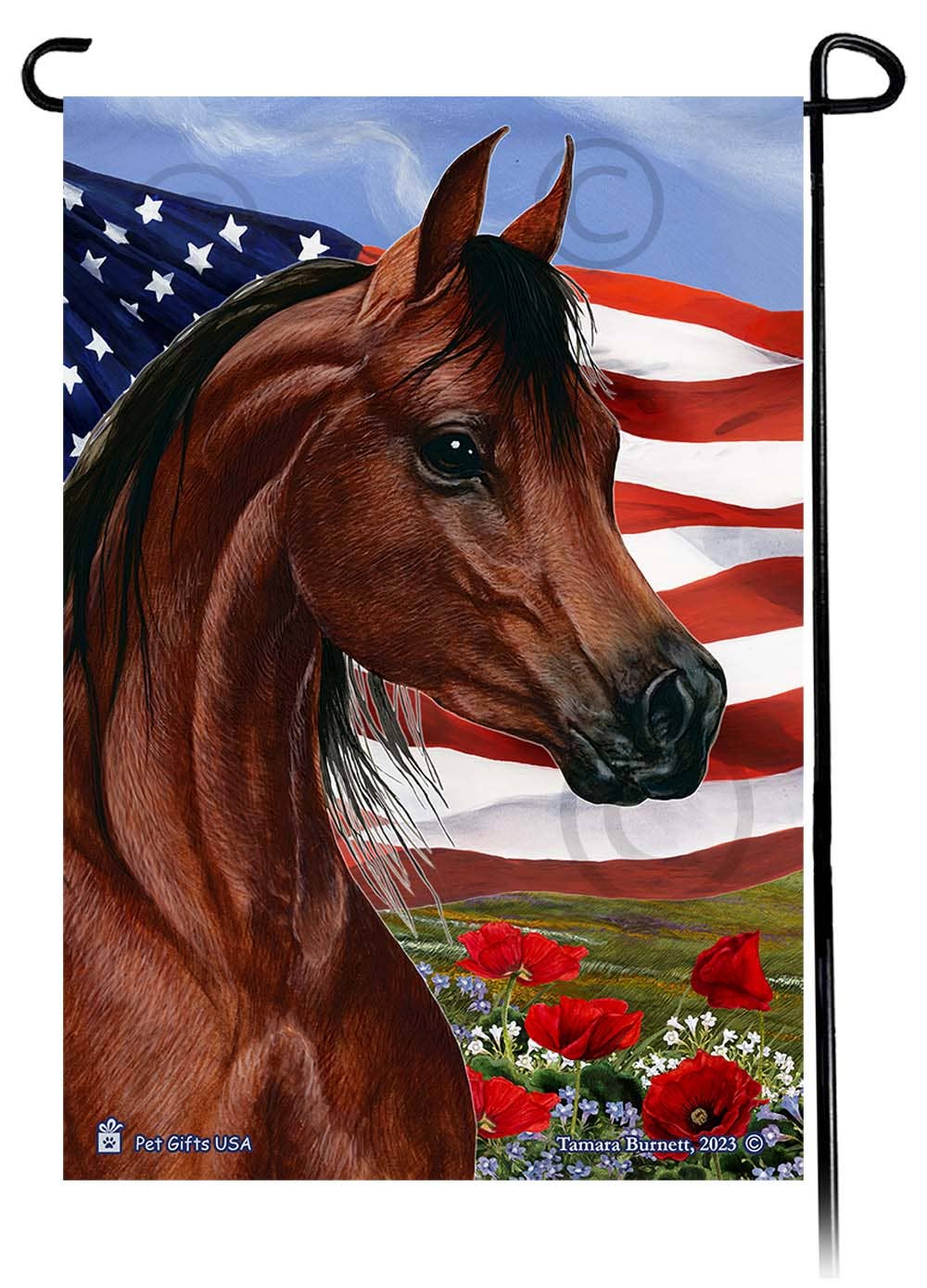 Quarter Horse Chestnut - Drapeau de jardin de fleurs patriotiques en vente B2B