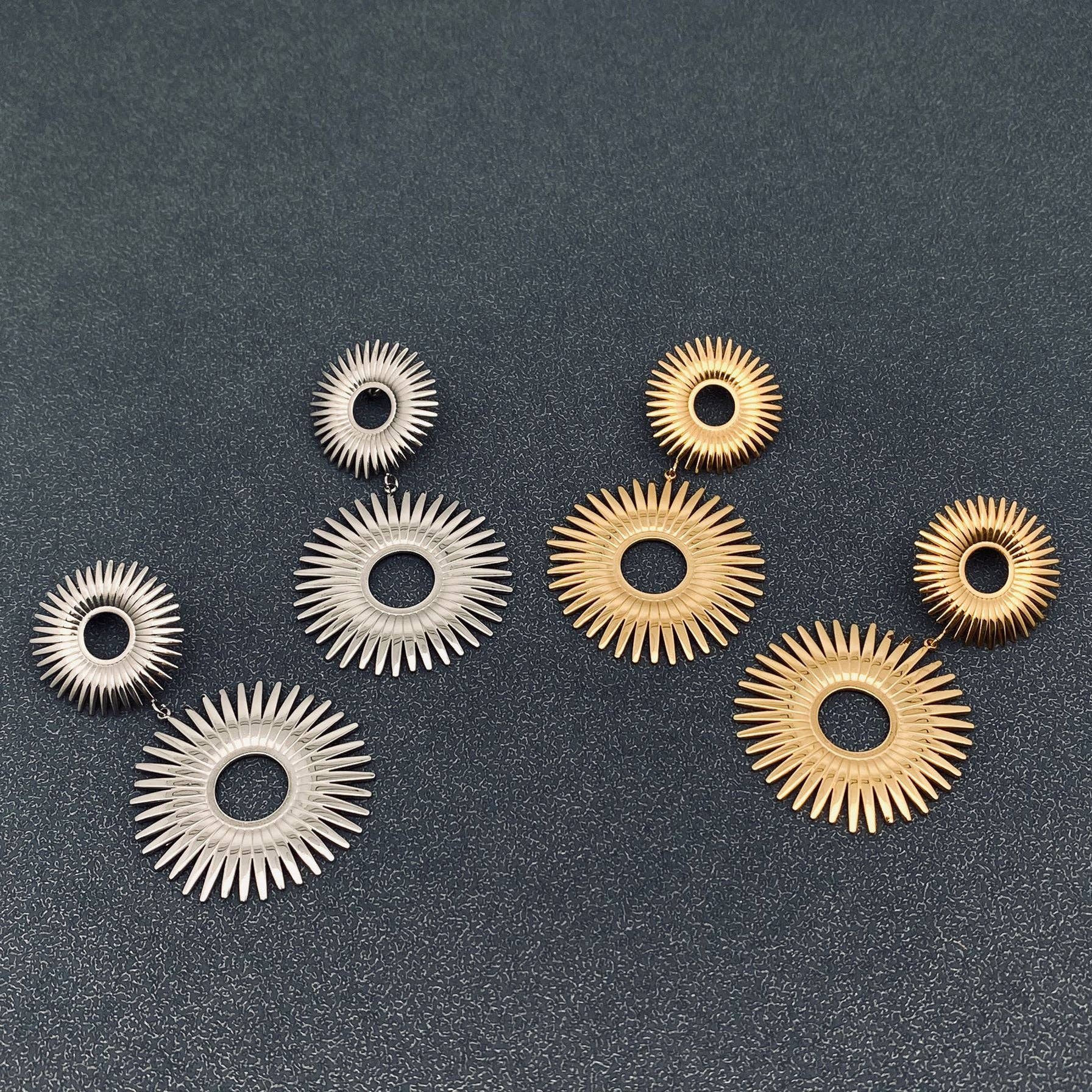 matériau : acier inoxydable 316L, placage or 18 carats taille : 35 mm x 7 mm forme : géométrie processus : galvanoplastie sous vide et polissage manuel Surface : hautement polie ★ Fabriqué en acier inoxydable de haute qualité, sans plomb, sans danger pour le corps humain. ★ Cadeau idéal pour un bijou