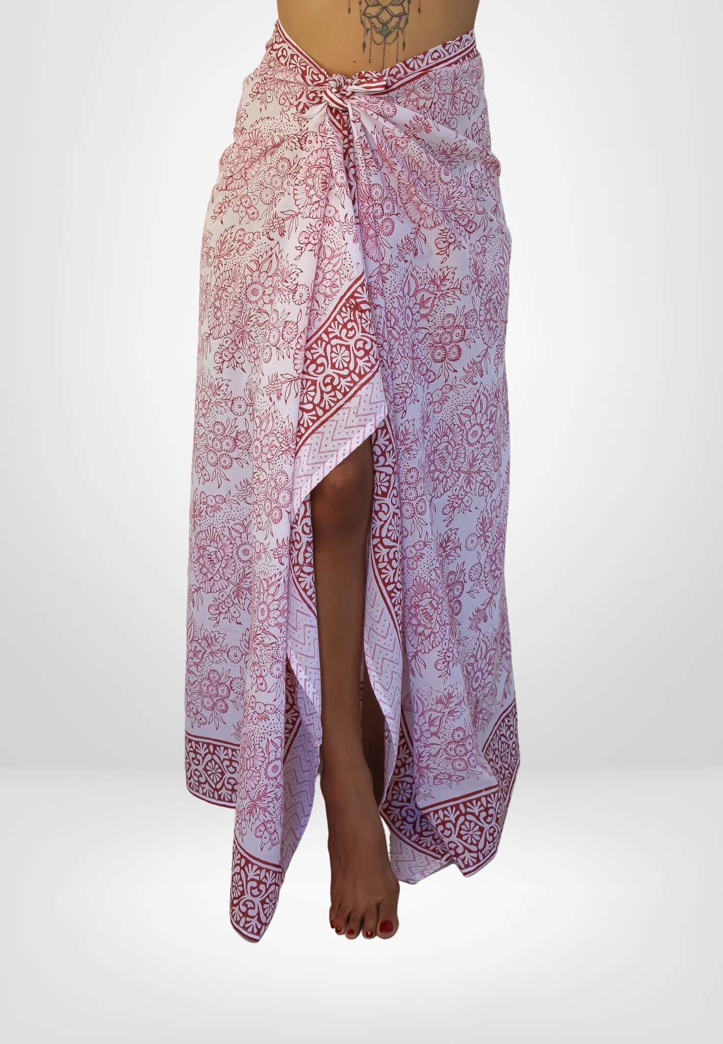Pareo en coton imprimé à la main - Motif fleurs rouges en vente B2B