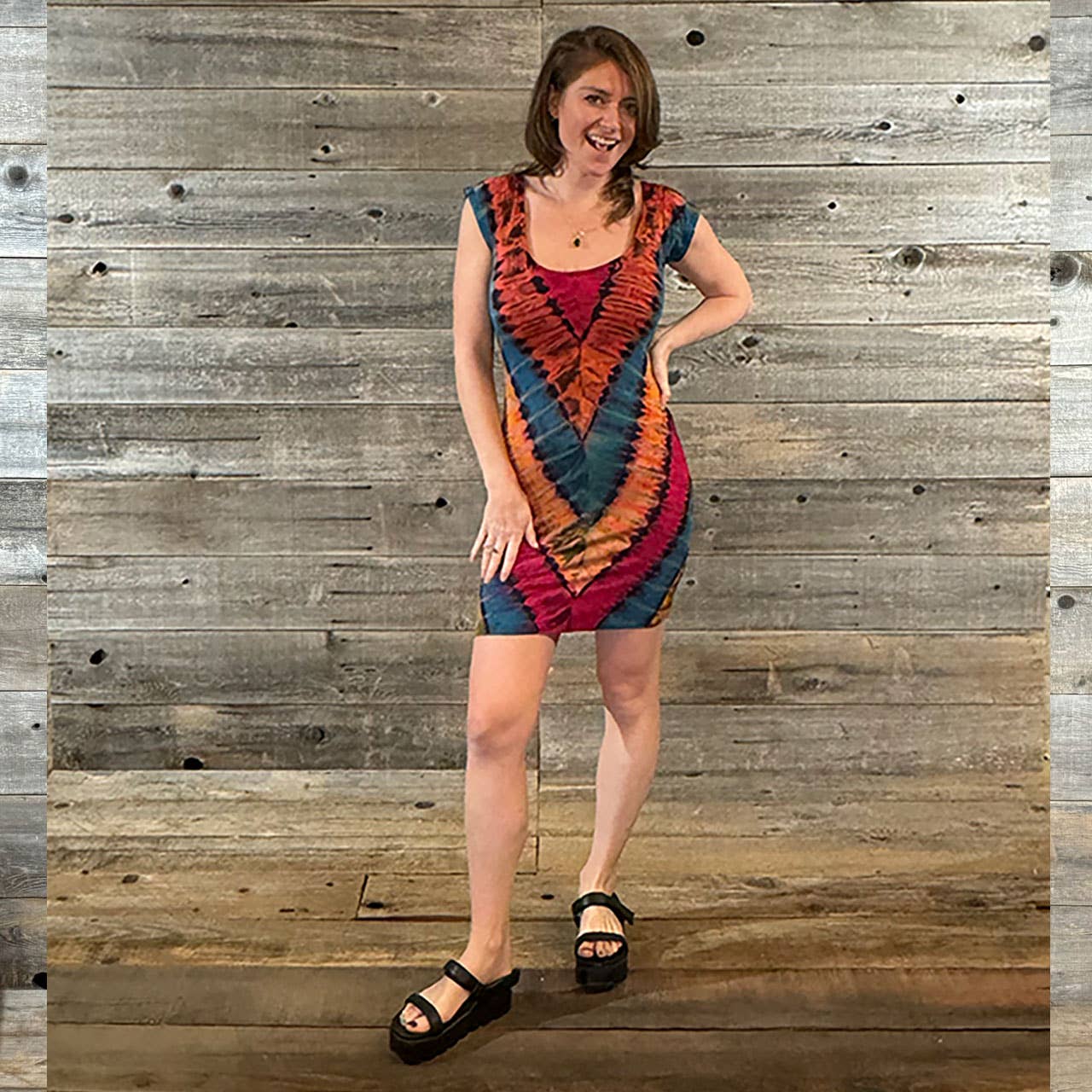 Robe courte à bretelles spaghetti coupe rasoir Grateful Dead bohème en vente B2B