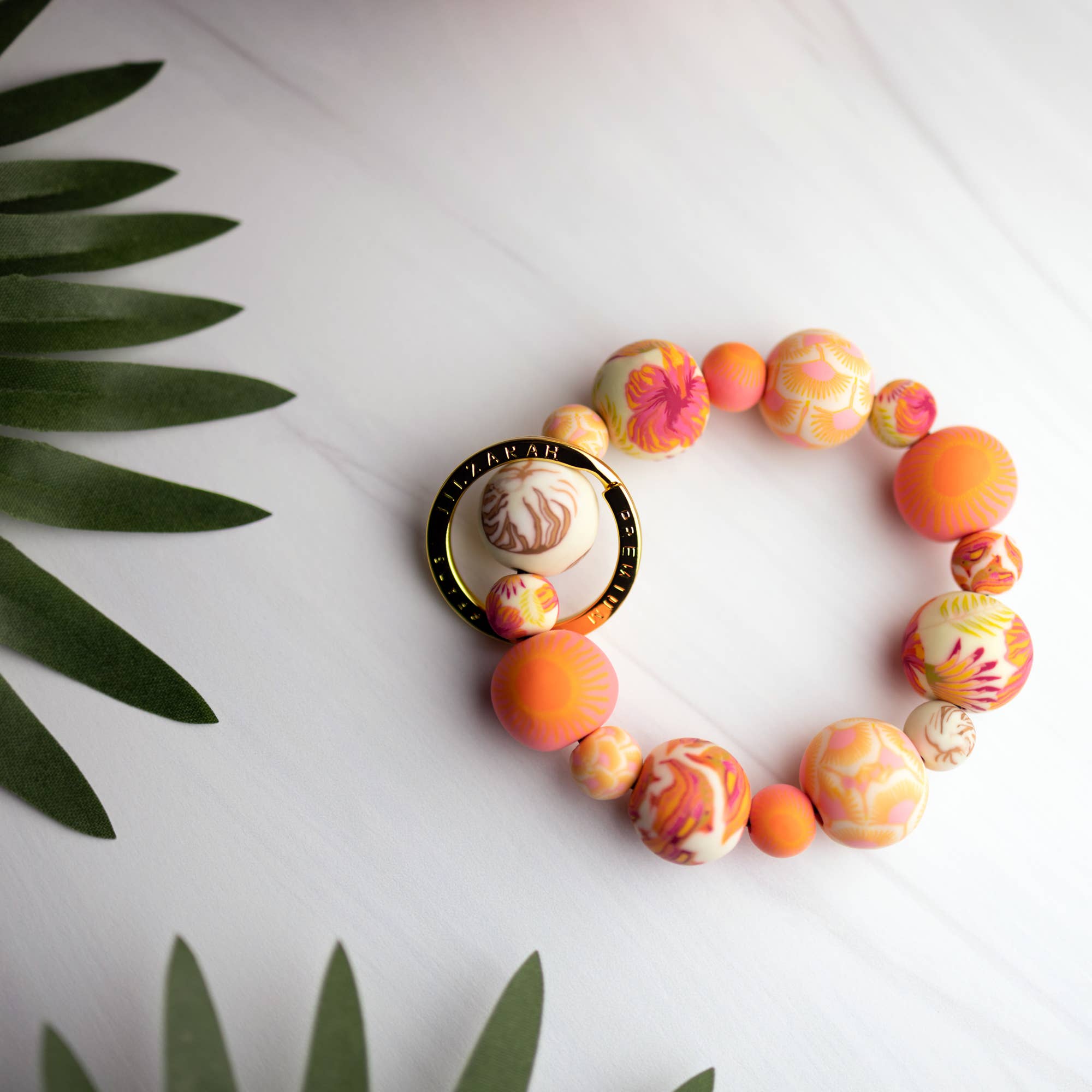 Vous en avez plein les mains ? Ce design intelligent vous permet d'exprimer votre style tout en gardant vos clés accessibles et vos mains libres. Le porte-clés Classic Wrist est notre article le plus populaire de tous les temps ! - Perles en pâte polymère de 10 mm et 18 mm fabriquées à la main - Sans plomb, sans nickel et sans cadmium - Cordon élastique ultra résistant de 1,5 mm pour une utilisation à long terme - Porte-clés doré avec logo JILZARAH - Taille unique qui convient à la plupart