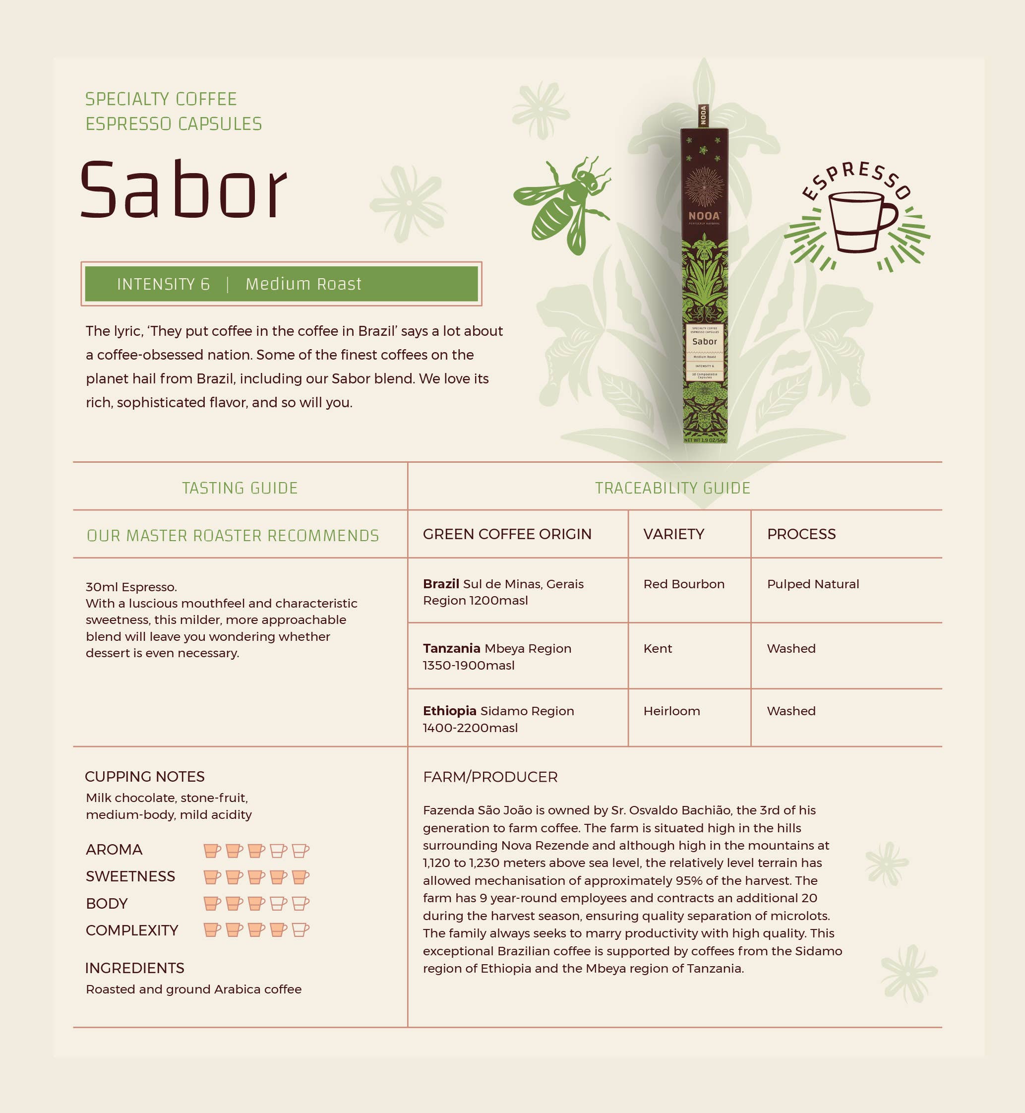 30 ml d'Espresso. Un trésor corsé sans aucune amertume agressive, notre Rasa gourmand est percutant et sucré avec des notes complexes d'épices.
