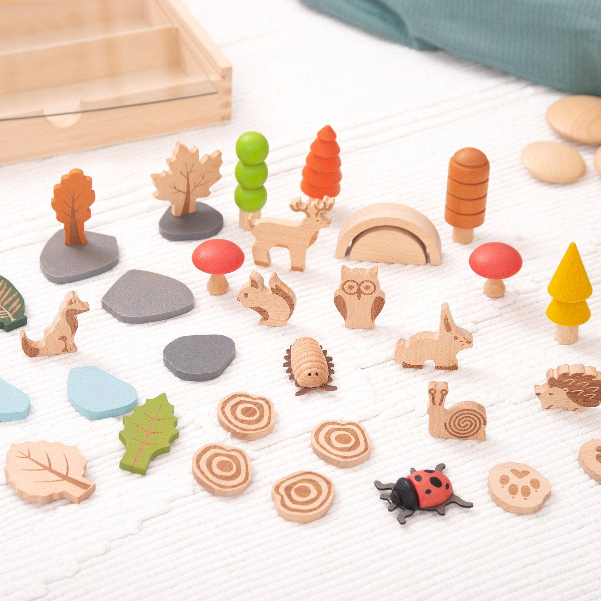 Blocs de construction en bois avec cubes gemmes colorés - Lot de 40 en vente B2B