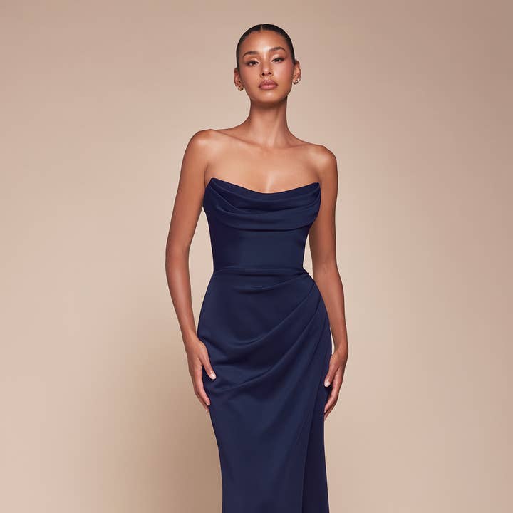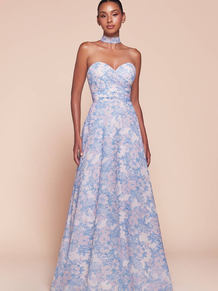 Cette robe ajustée présente un décolleté en cœur sans bretelles et une taille froncée, confectionnée en satin doux avec un charmant imprimé floral. La fermeture à lacets du corset à l'arrière assure un ajustement parfait tout en ajoutant une touche élégante. Idéale pour les demoiselles d'honneur, les invités de mariage et les événements formels, cette robe offre un style intemporel et sophistiqué. Caractéristiques principales : Silhouette : Ajustée Design : Décolleté en cœur sans bretelles et taille froncée Tissu et matériau : Satin doux avec imprimé floral Détail de coupe : Robe ajustée et fermeture à lacets du corset à l'arrière Occasions : Idéale pour les demoiselles d'honneur, les invités de mariage et les événements formels