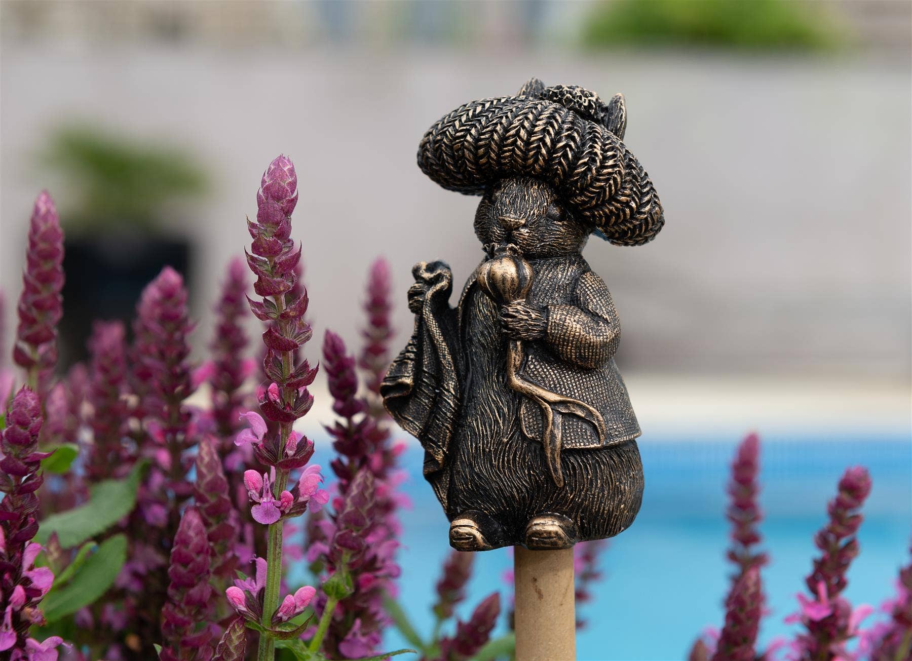 Notre compagnon primé Bronze Squirrel NutkinCane a été conçu et fabriqué sur mesure par Jardinopia Ltd. Il est fabriqué à partir d'une polyrésine durable et d'un matériau à base de pierre concassée. Il est résistant au gel, résistant aux UV et peint à la main avec des produits sans plomb. Vous pouvez le laisser à l'extérieur toute l'année et la peinture ne se décolorera pas et ne s'écaillera pas en cas de températures extrêmes et le produit ne sera pas affecté par le gel. Bronze Squirrel Nutkin Cane Companion est un cadeau idéal pour les amoureux du jardin et des animaux. Chaque Cane Companion est joliment emballé dans un emballage cadeau fabriqué à partir de matériaux de cartes artisanaux 100 % recyclés (et recyclables à partir de maintenant). Les Beatrix Potter Cane Companions sont des produits officiels sous licence mondiale, gracieusement fournis par la maison d'édition Penguin Random House Limited. Nous avons également nos Beatrix Potter Potty Feet et Pot Buddies à vous proposer. Tous nos compagnons Cane : Ils sont conçus pour protéger vos yeux lorsque vous jardinez et reposent fermement sur vos tiges de bambou ou vos piquets. Ils contiennent une cuillère