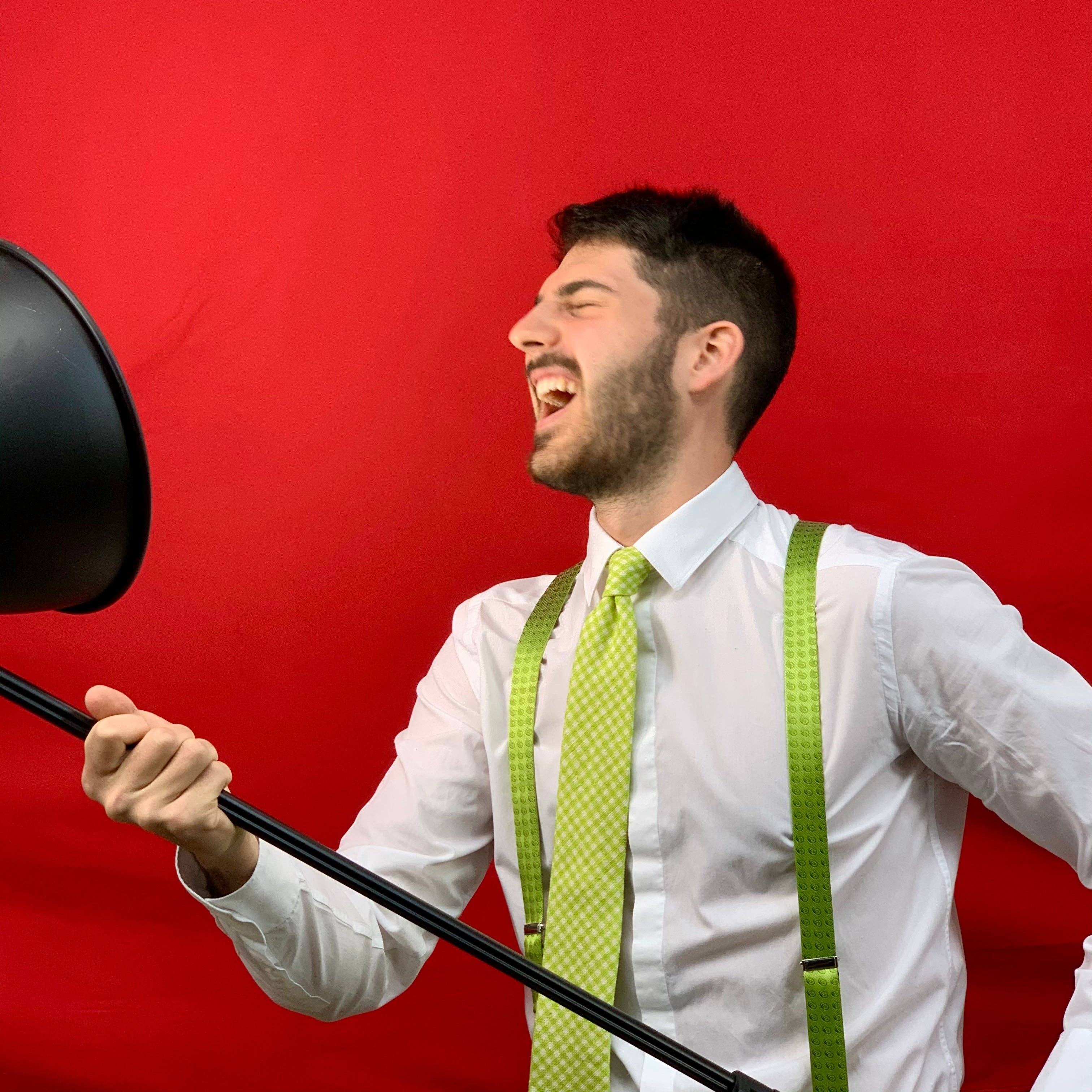 · Couleur : bordeaux avec pois blancs · Taille : 120 cm · Largeur : 25 mm · Fixation : clips métalliques · Médaille ronde en cuir embossée « Bertelles » · Dos élastiqué contrastant bleu marine