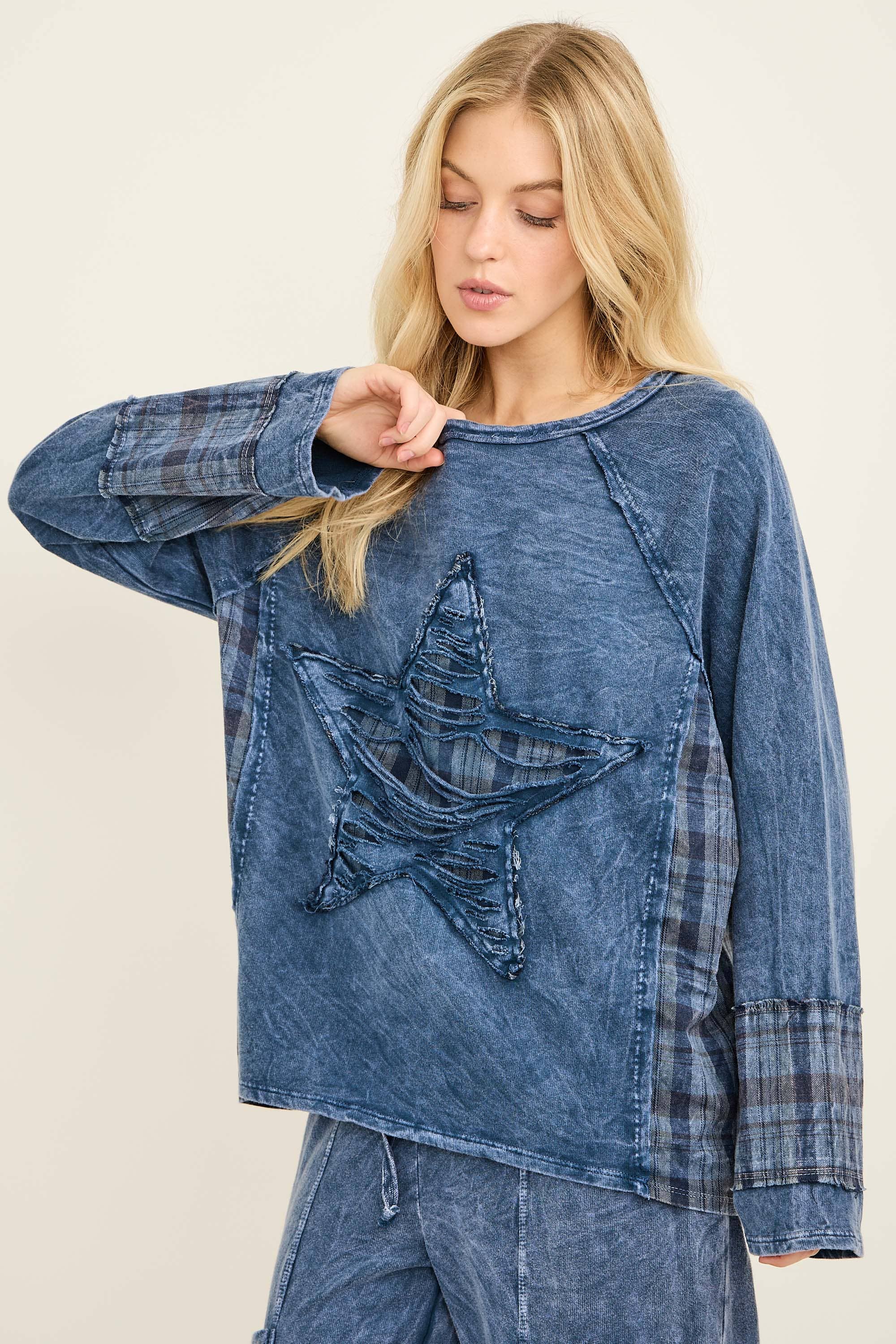 Pantalon large MineralWash avec ourlet brut et détails effilochés HP5536