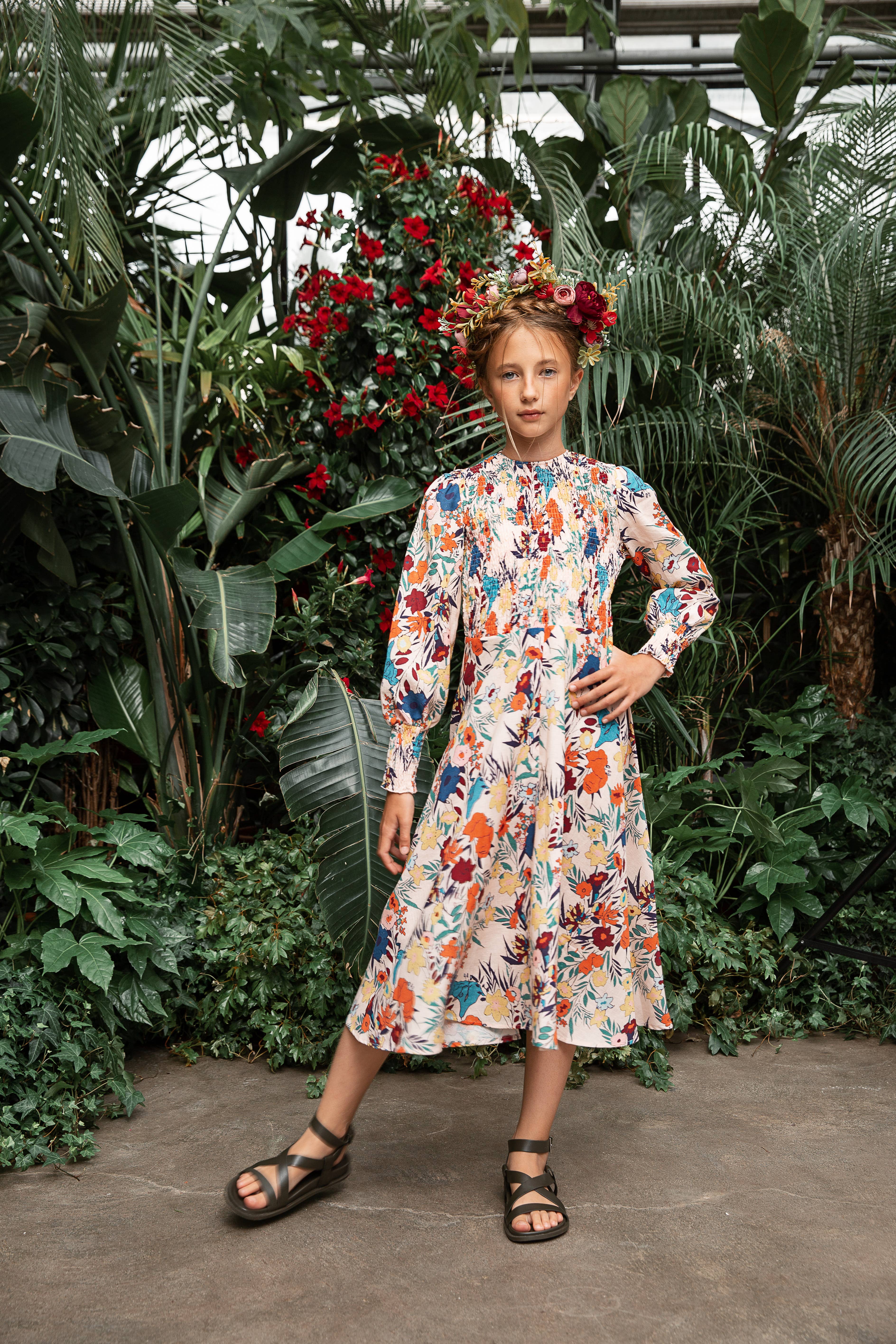 Robe bohème beige pour filles avec broderie Golden Castle en vente B2B