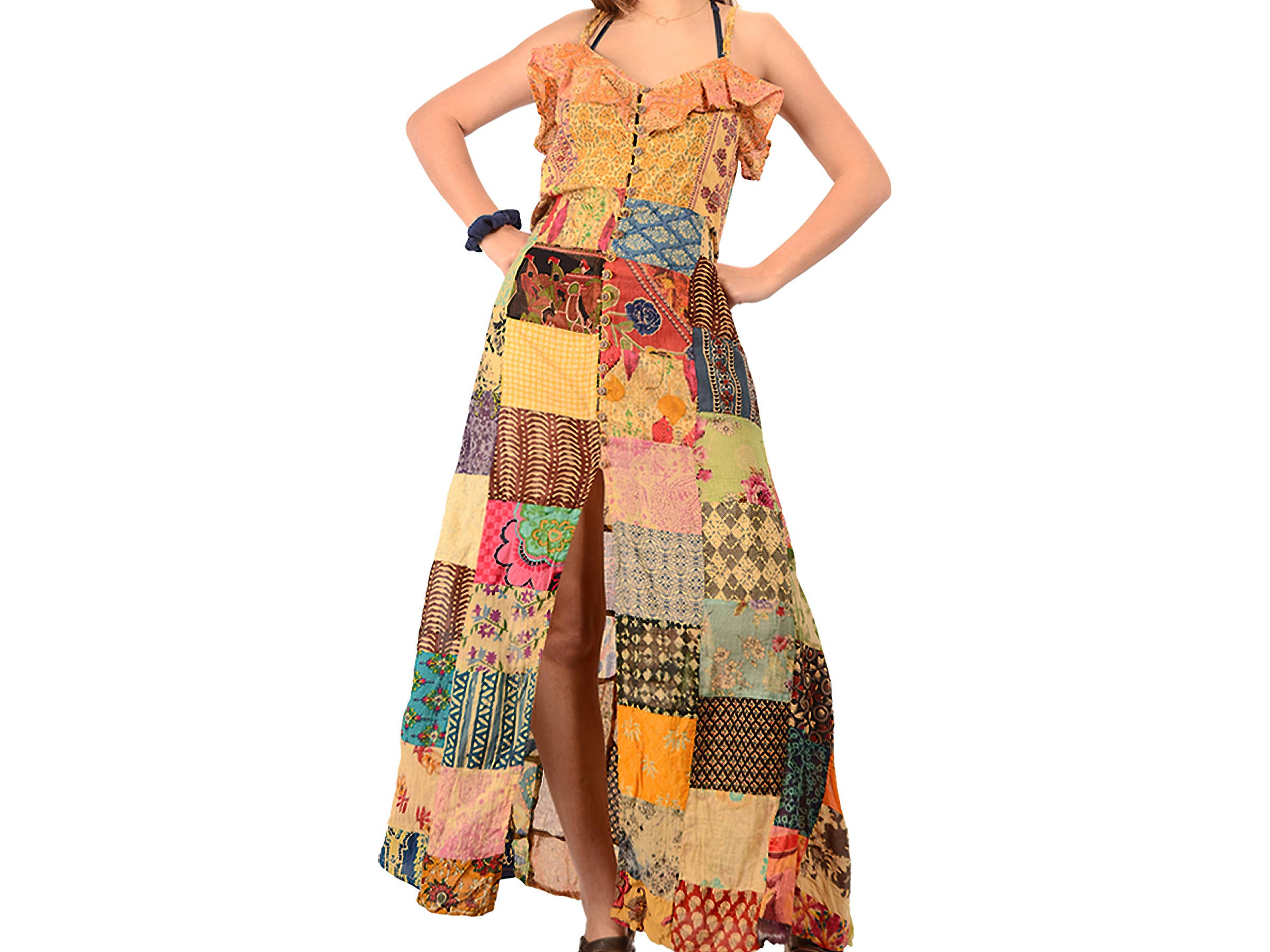 Préparez-vous à adopter votre esprit bohème et à danser au rythme de la liberté avec notre « robe à manches volantées à imprimé en coton ». Cette robe groovy est une explosion éclatante de couleurs et de motifs qui fera chanter votre cœur. Fabriqué avec amour et confectionné en coton doux, il vous enveloppe confortablement tout en libérant l'enfant sauvage qui sommeille en vous. Les manches volantées ajoutent une touche de fantaisie et de mouvement, vous invitant à virevolter et à vous balancer au rythme de votre propre âme hippie. Que ce soit pour gambader dans des champs baignés de soleil, pour assister à un festival de musique ou simplement pour apporter une touche positive à votre vie quotidienne, cette robe est votre compagne idéale. Associez-le à vos sandales préférées, à une couronne de fleurs et à une poignée de bracelets bohèmes, et préparez-vous à laisser votre esprit s'envoler. Embrassez l'énergie insouciante, répandez l'amour et la paix et laissez la robe à manches volantées en coton exprimer haut en couleur la reine bohème qui sommeille en vous. les couleurs peuvent varier.