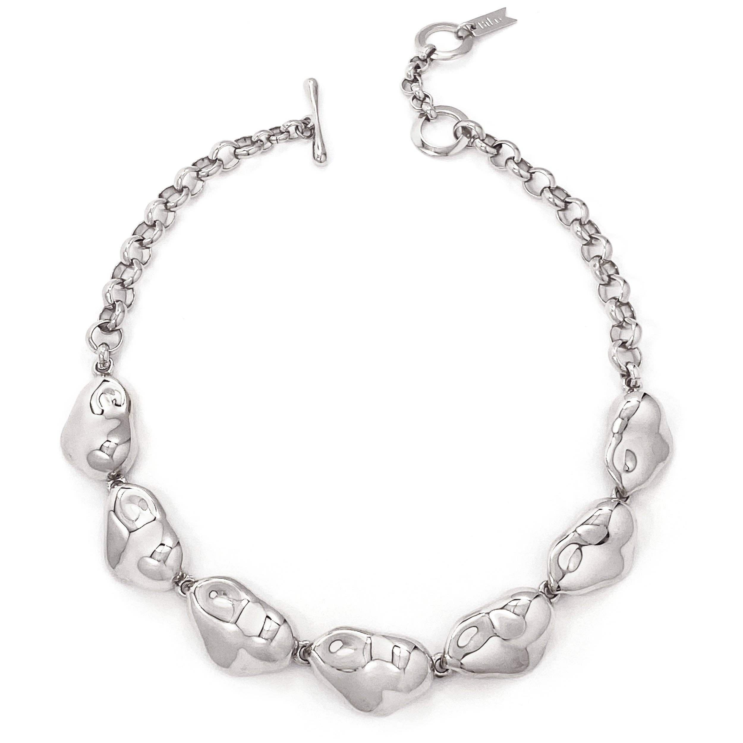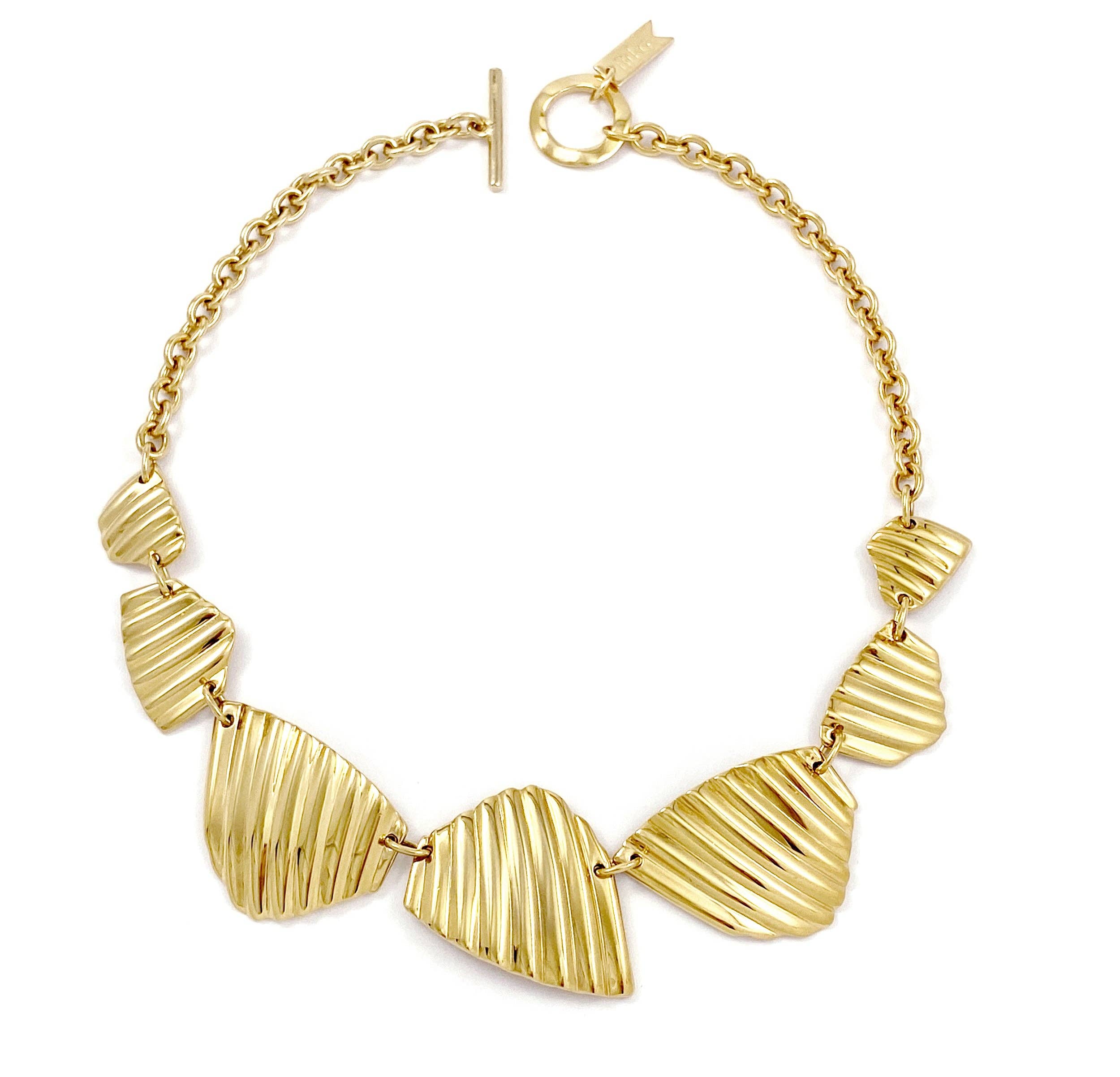 Pièce phare de la saison, le col Galina repose confortablement sur le cou et dégage une sensation de calme et de confort. Galina est nommée d'après le mot grec qui signifie « calme, sans vent ». Moulés à la main à partir d'une gamme de beaux cailloux que la designer Corrine a trouvés sur la plage du village de sa grand-mère à Bolati, en Grèce, et polis à la perfection à la main. Galina est une pièce très spéciale et intemporelle que vous adorerez pour les années à venir. Plaqué or 14 carats sur laiton, hypoallergénique Formes coulées et polies à la 16,5 po de longueur+extension de 2 po, fermoir à bascule Style : NE283 Fabriqué avec amour à Toronto, Canada