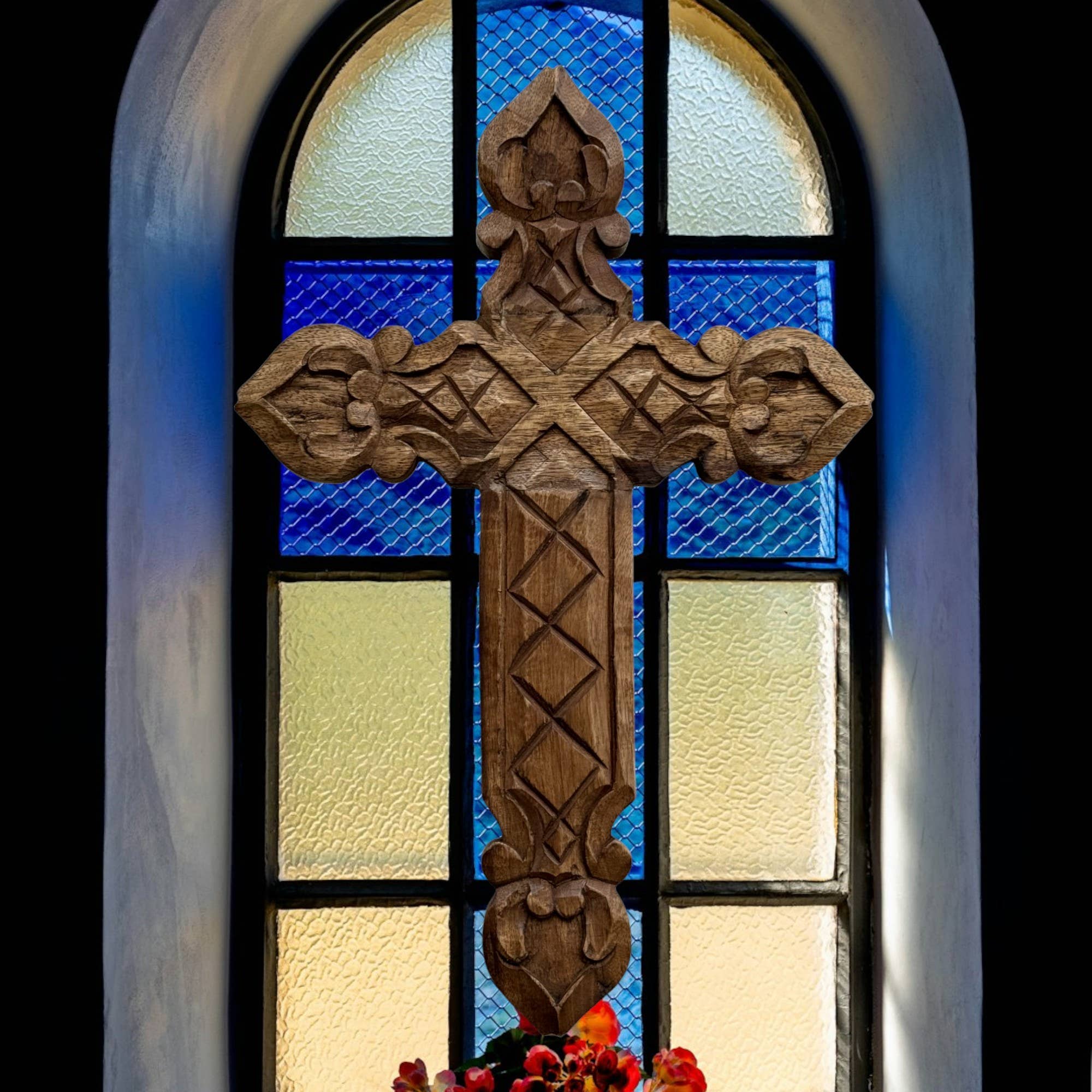 Croix murale en bois sculpté à la main Cameo en vente B2B