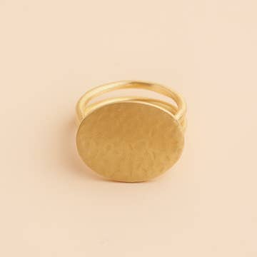 RB302 Bague en acier inoxydable doré, sous forme d'oeil avec une pierre teintée en bleu, réglable.