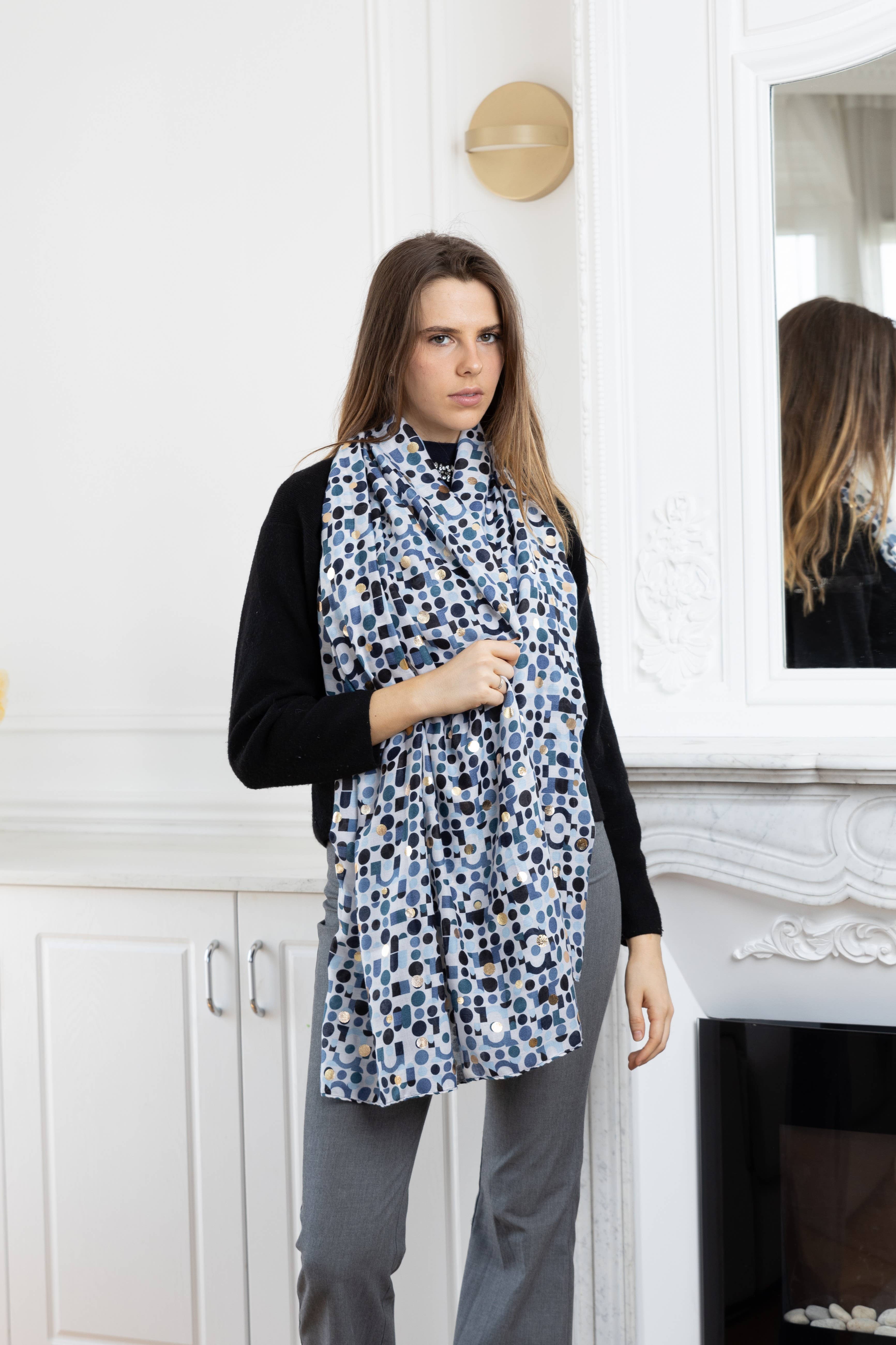Retrouver nos écharpes intemporel en matière tout doux, avec ses motifs tendances et colorés. Modèle mixte, à mettre autour du cou Taille 90 x 180 cm