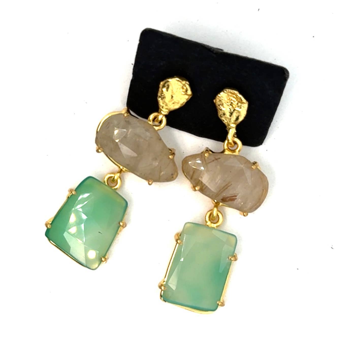 Boucles d'oreilles Monica Matériau : Le métal de base est en laiton et est plaqué or jusqu'à 14 carats. Bijoux artisanaux ornés de pierres semi-précieuses