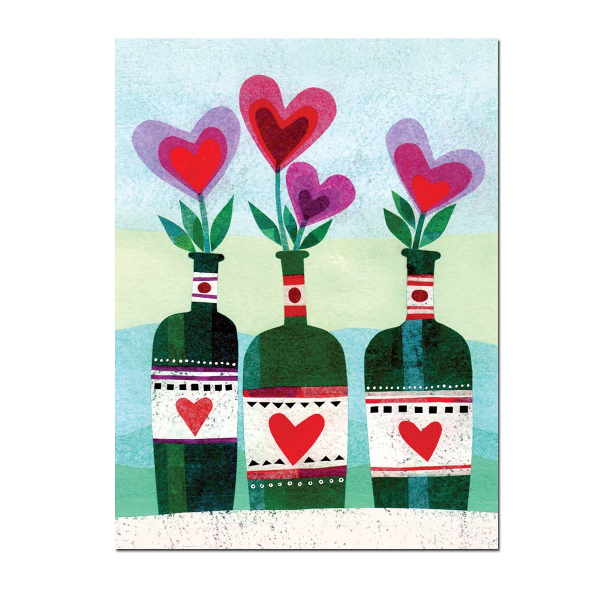 Salut à l'intérieur : Bonne Saint-Valentin ! Détails : 6 x 4 1/2 finition blanc mat, imprimé sur papier carton épais. Conçu par l'artiste Kathy Johnson. Fabriqué aux États-Unis !