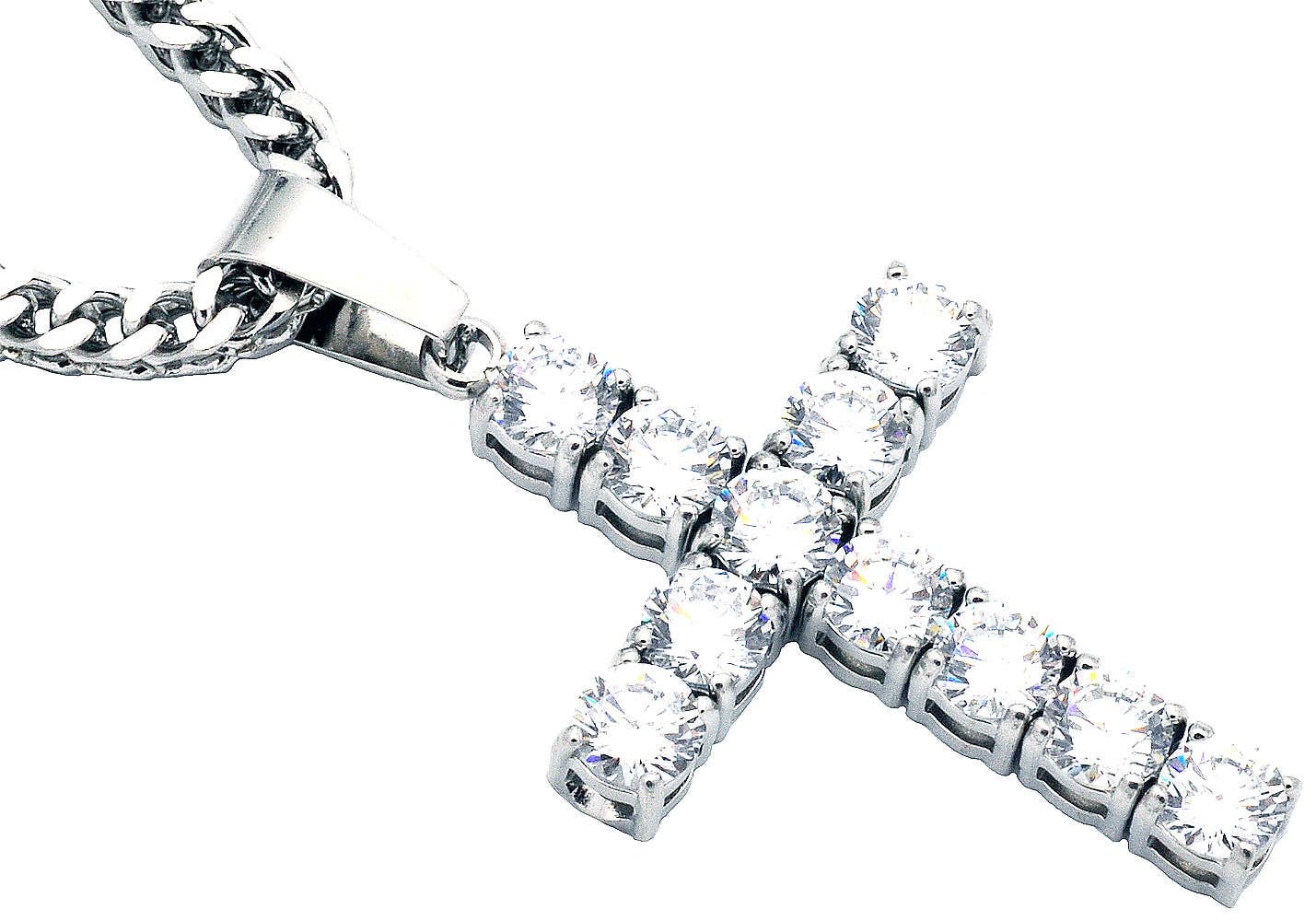 Pendentif en forme de croix en acier inoxydable doré bicolore pour homme avec chaîne