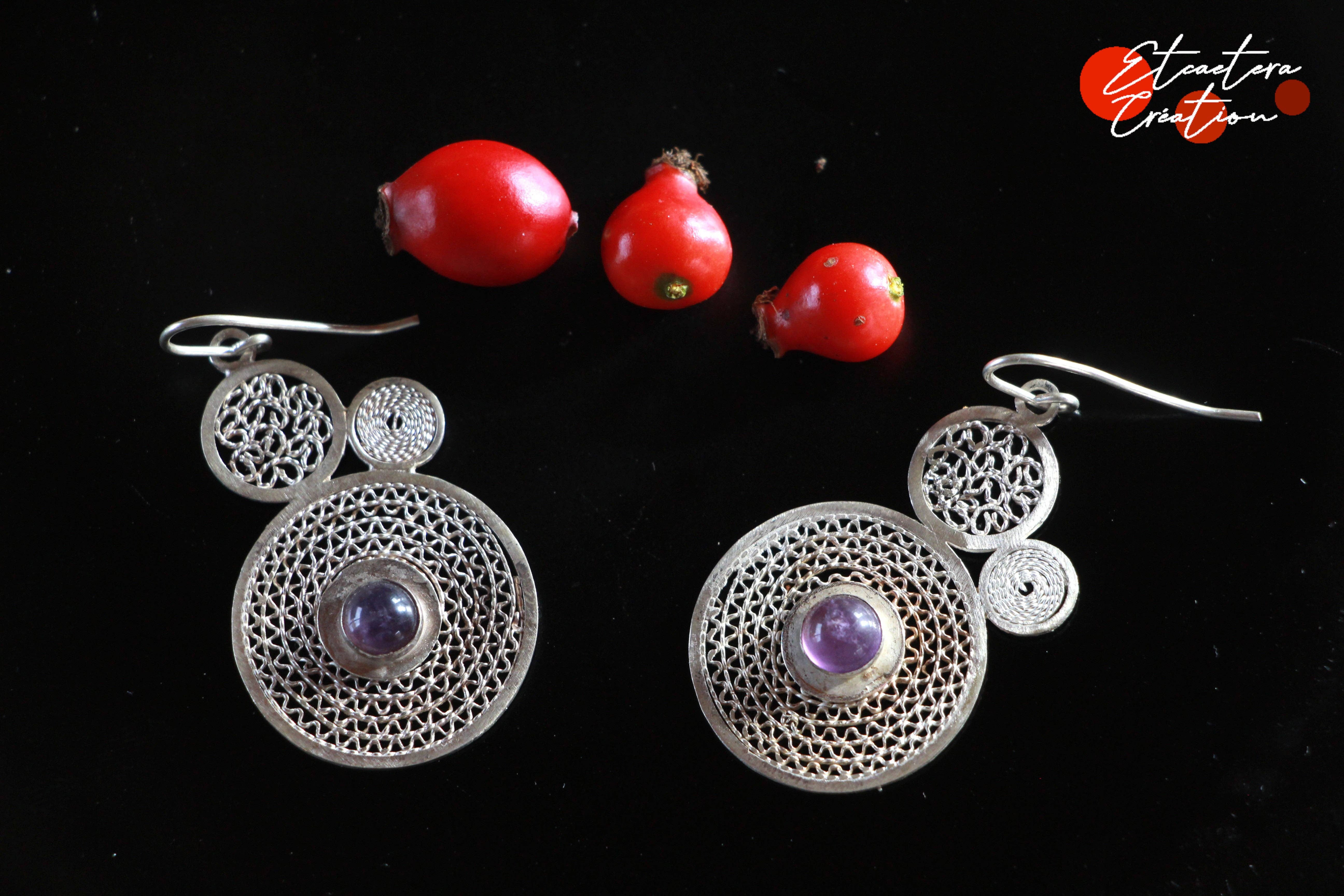 Des boucles d'oreille en filigrane aux airs de printemps. Des libellules en fils d'argent 925, légères et délicates.