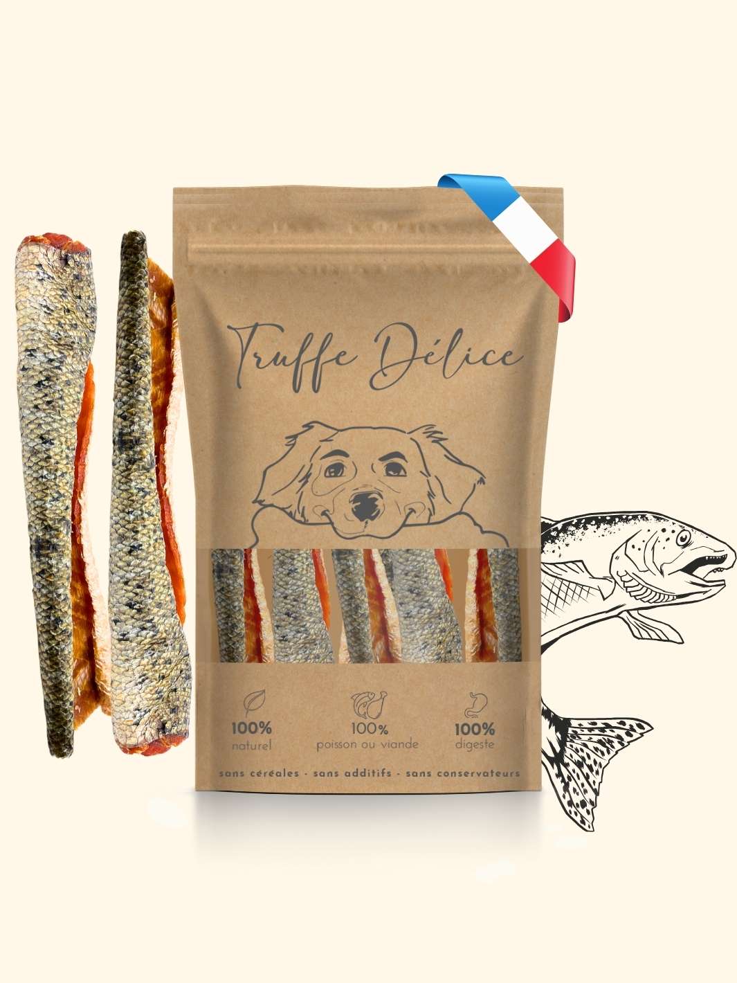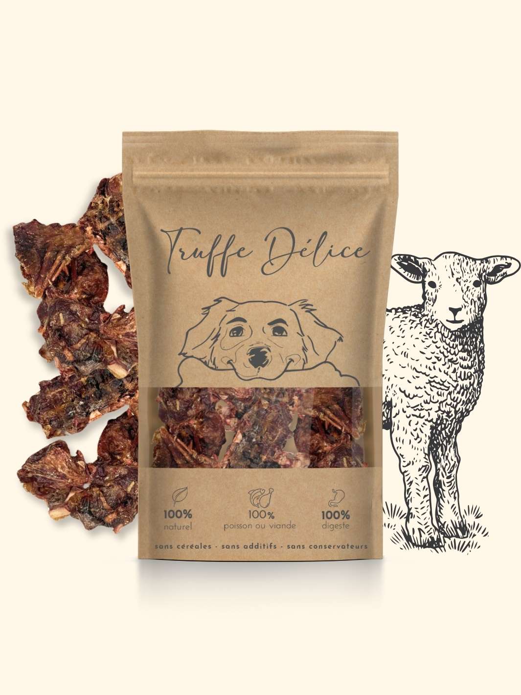 Variétés de viandes gourmandes pour chien Notre sachet de viandes gourmandes est une sélection exquise destinées aux palais les plus fins de nos loulous. Chaque sachet est un voyage gustatif à travers des viandes soigneusement choisies pour leur qualité et leur saveur. Ce mélange offre une expérience riche en goût et en textures. Les avantages * Diversité des friandises : permet de découvrir de nouveaux produits et de varier les plaisirs 🤤 * Convivialité : idée de cadeau originale pour les loulous de vos proches 🎁 * Qualité : viandes séchées cuites à base température, sans additifs ni conservateurs artificiels ⭐️⭐️⭐️⭐️⭐️ * Une alternative aux jouets : permet à votre animal de compagnie de s'amuser tout en prenant soin de sa dentition et de sa santé 🦷 * Des friandises de longue durée : offrent une occupation durable pour votre loulou 🕦 À quel chien conviennent ces variétés de viandes ? Ce sachet est conçu pour convenir à tous les chiens, de tous âges et de toutes les tailles. Que ce soit pour un jeune chiot en pleine croissance, un adulte dynamique ou un senior cherchant à maintenir sa condition physique, notre sachet de variété de viandes est un choix judicieux. Informations complémentaires * Composition : trachées de boeuf 5cm * Constituants analytiques : protéines brutes 65,07 %, matières grasses brutes 14,07, humidité 1,20 %, cendres brutes 12 % * Composition : panses de boeuf * Constituants analytiques : protéines brutes 72,2 %, matières grasses brutes 3 %, humidité 13,3 %, fibres brutes 3,1 %, cendres brutes 4,83 % * Composition : pattes de poulet * Constituants analytiques : protéines brutes 39,5 %, matières grasses brutes 26 %, cendres brutes 18,04 %, humidité 6,1 % * Composition : poumons de boeuf * Constituants analytiques : protéines brutes 65,4 %, matières grasses brutes 15,41 %, cendres brutes 8 %, humidité 9,7 %