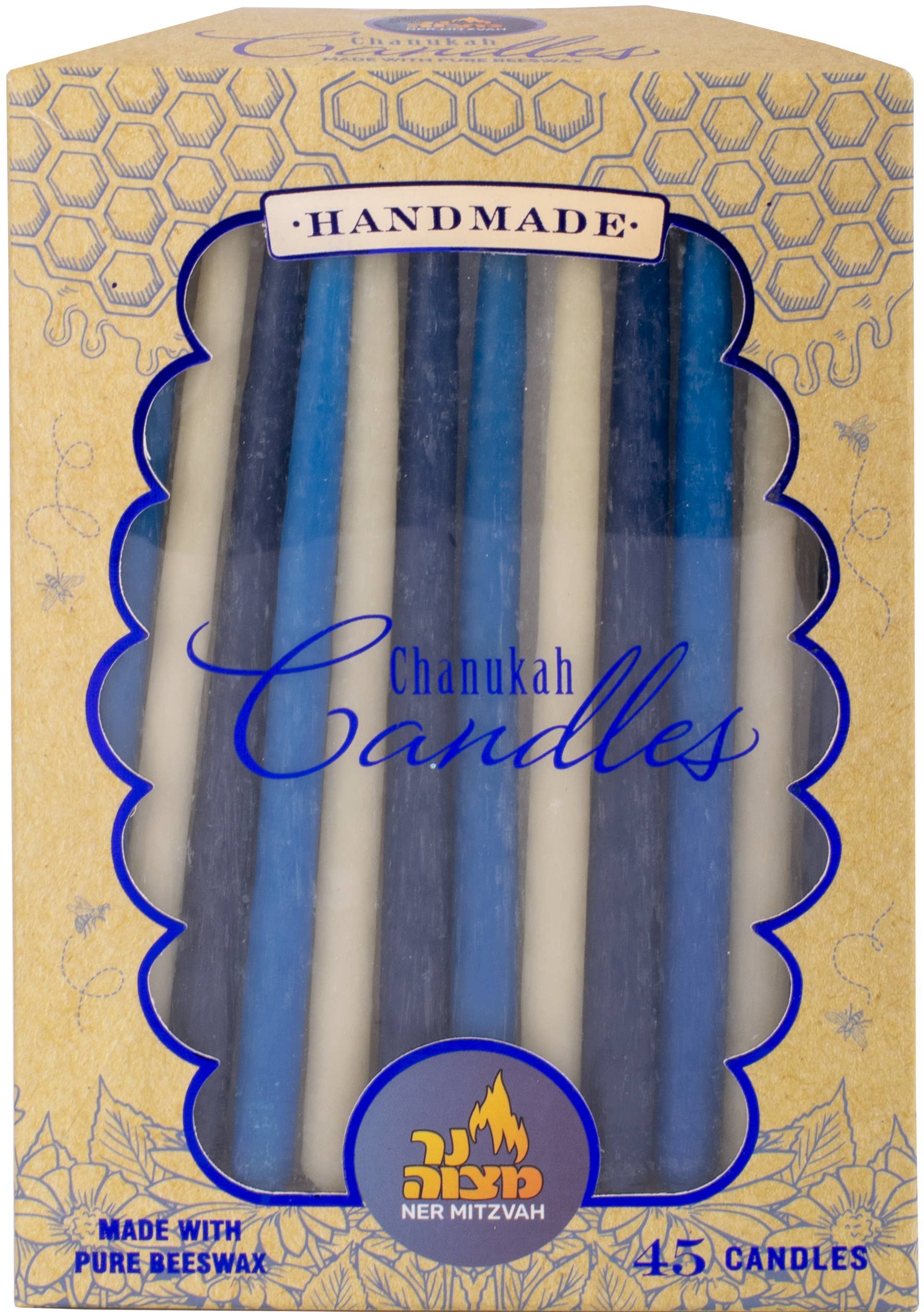 Bougies de Hanoukka en cire d'abeille, bleues et blanches, paquet de 45 en vente B2B